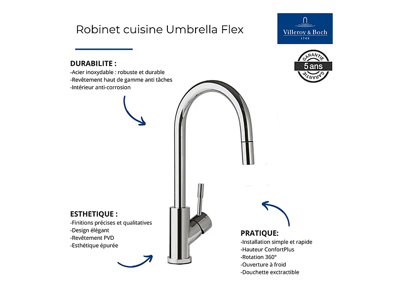 Robinet cuisine VILLEROY ET BOCH Umbrella flex or mat