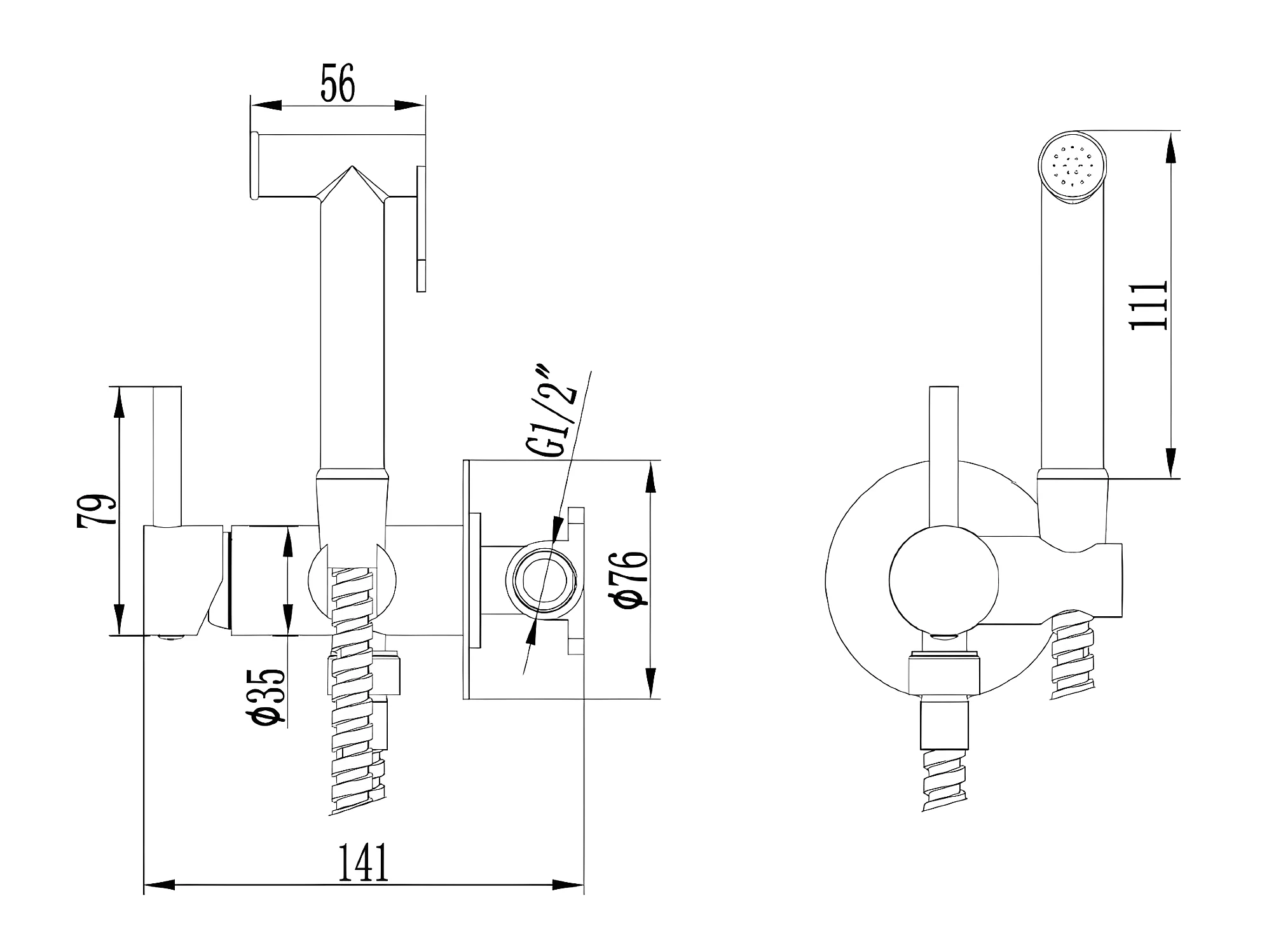Kit Douchette hygiénique À ENCASTRER, WC ou Bidet Salle de Bain Chrome MUNICH RDM001