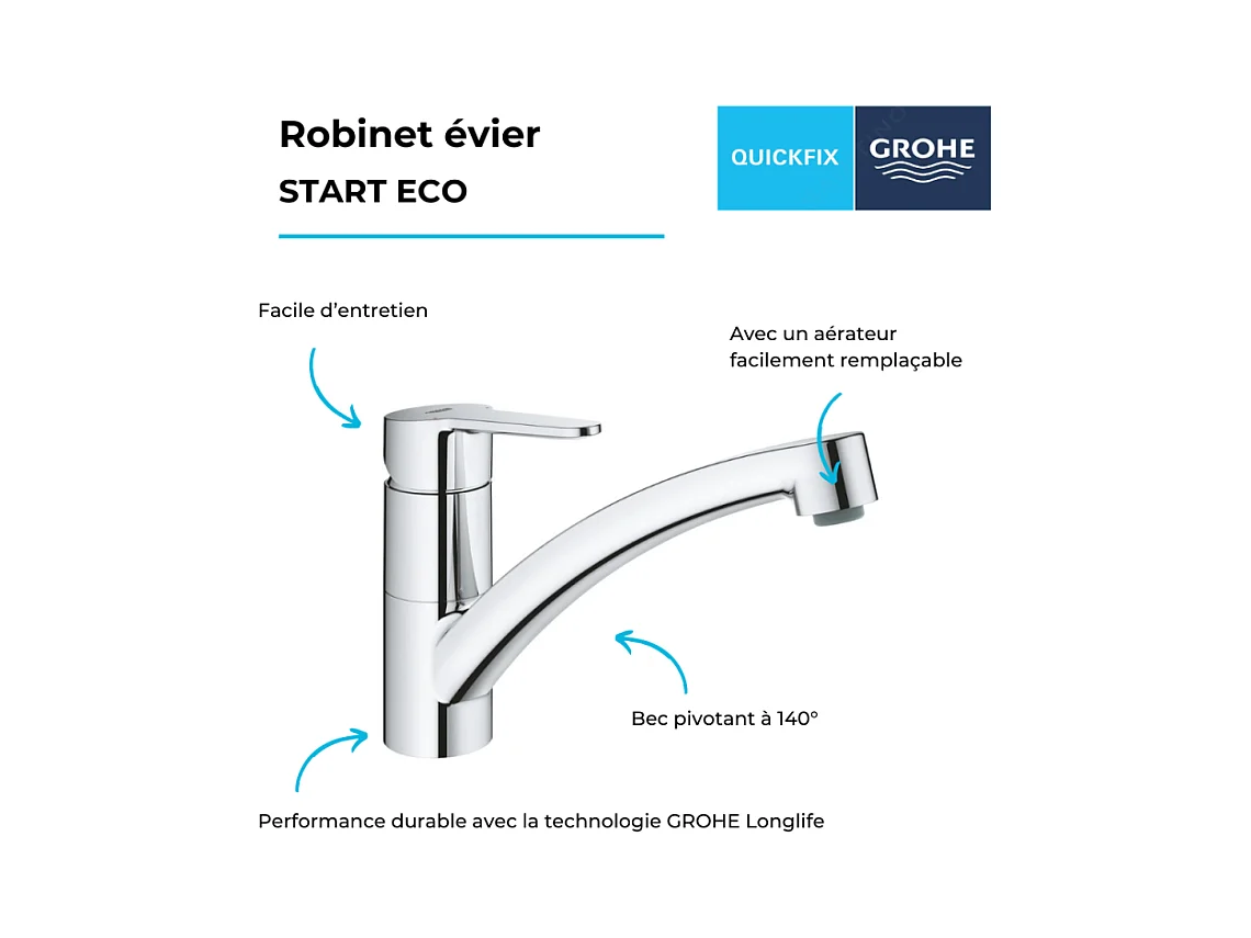 Robinet de cuisine bec bas GROHE Start Eco Quickfix + microfibre