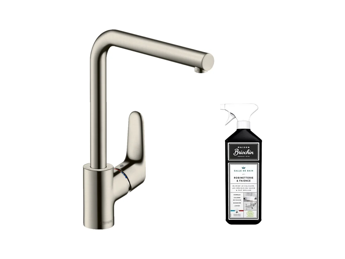 Robinet de cuisine HANSGROHE Focus M41 280 aspect acier inox + nettoyant Briochin