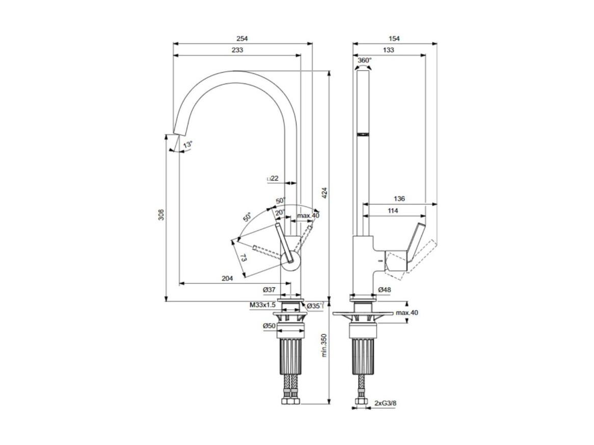 Robinet de cuisine IDEAL STANDARD Gusto carre gris magnetique