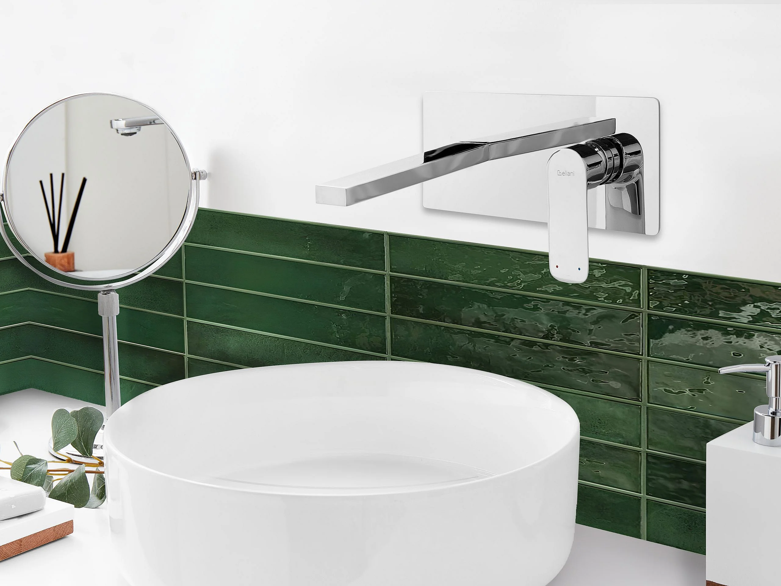 Robinet de lavabo mural ISHINCA Laiton Argenté