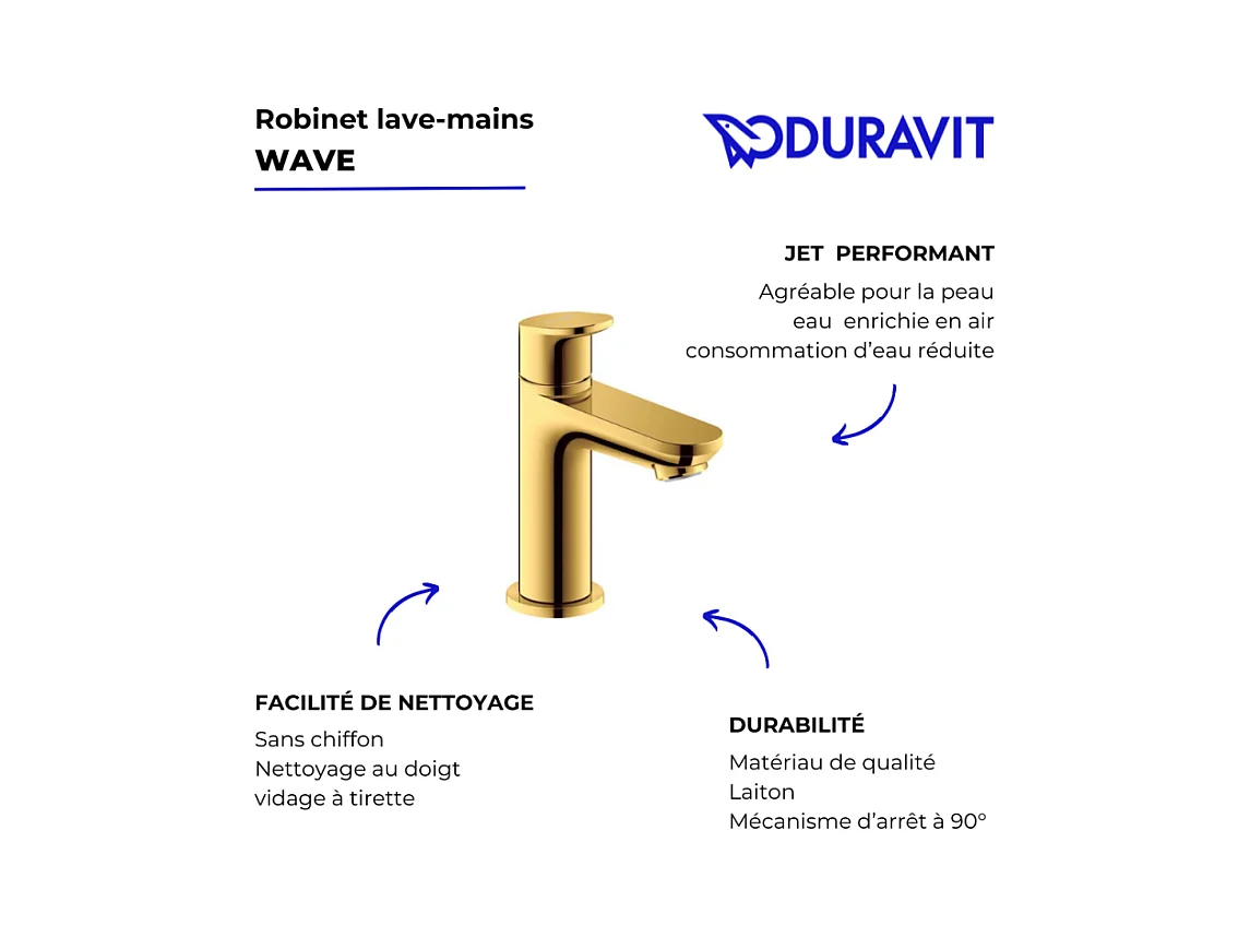 Robinet lave-mains eau froide DURAVIT Wave doré poli