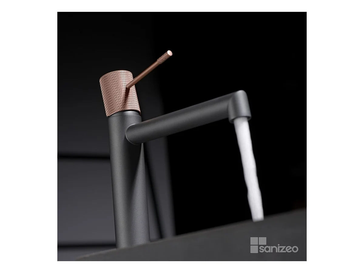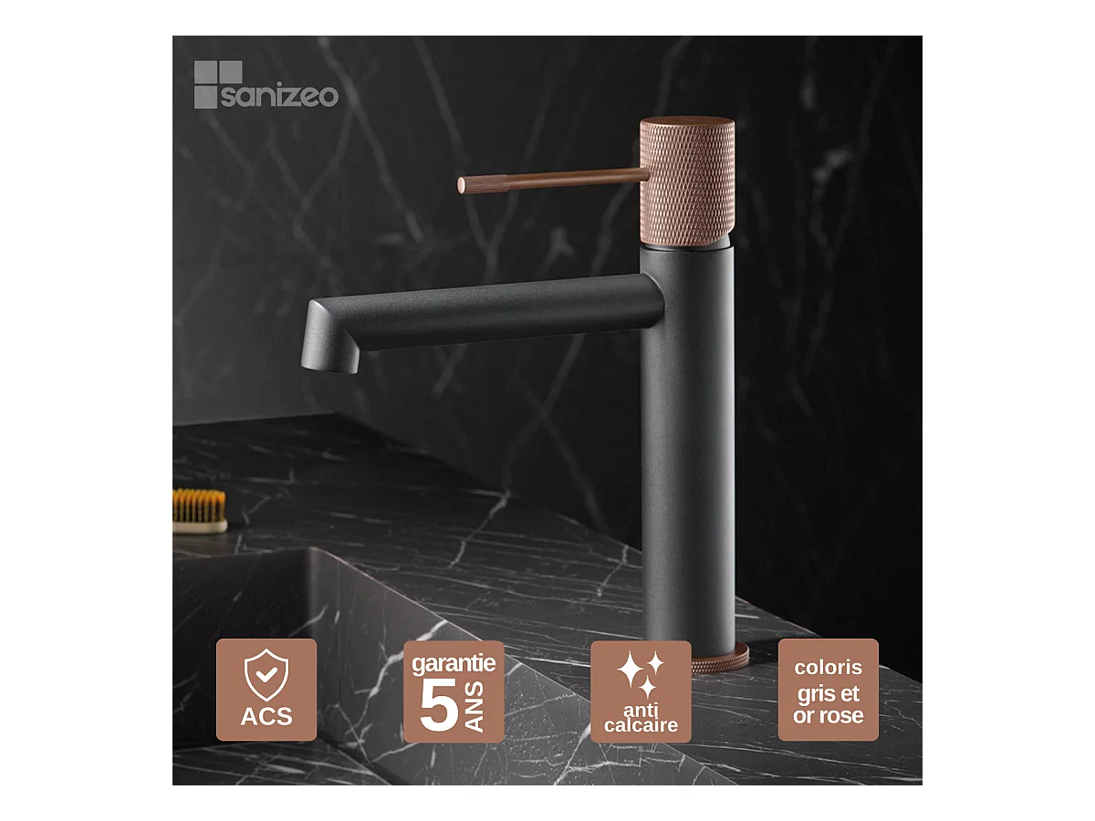 Mitigeur Lavabo Salle de Bain gris/champagne – Bec Haut Anti-Calcaire – Design Moderne - LINE IMEX