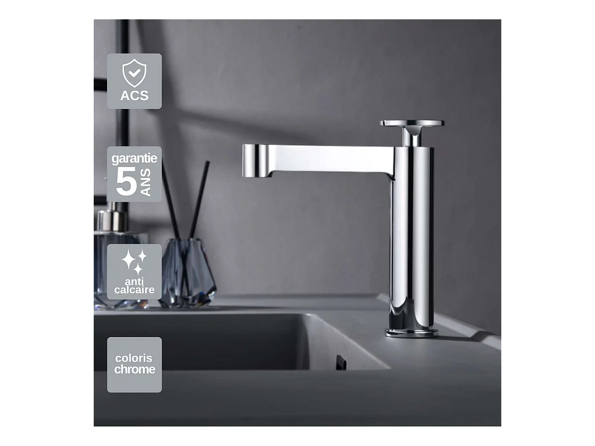 Mitigeur Lavabo Salle de Bain chromé – Bec Haut Anti-Calcaire – Design moderne - URAL IMEX