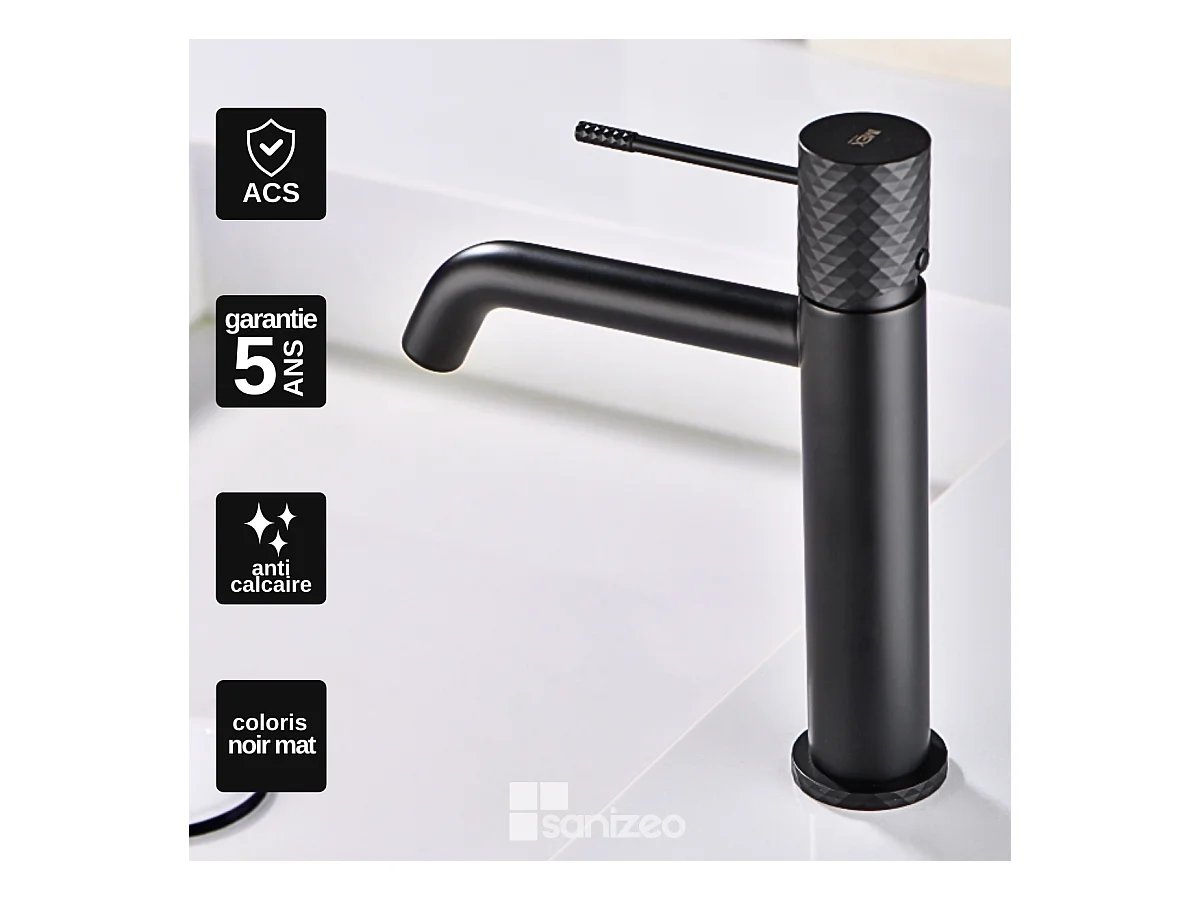 Mitigeur Lavabo Salle de Bain noir mat – Bec Haut Anti-Calcaire – Design moderne - ART IMEX