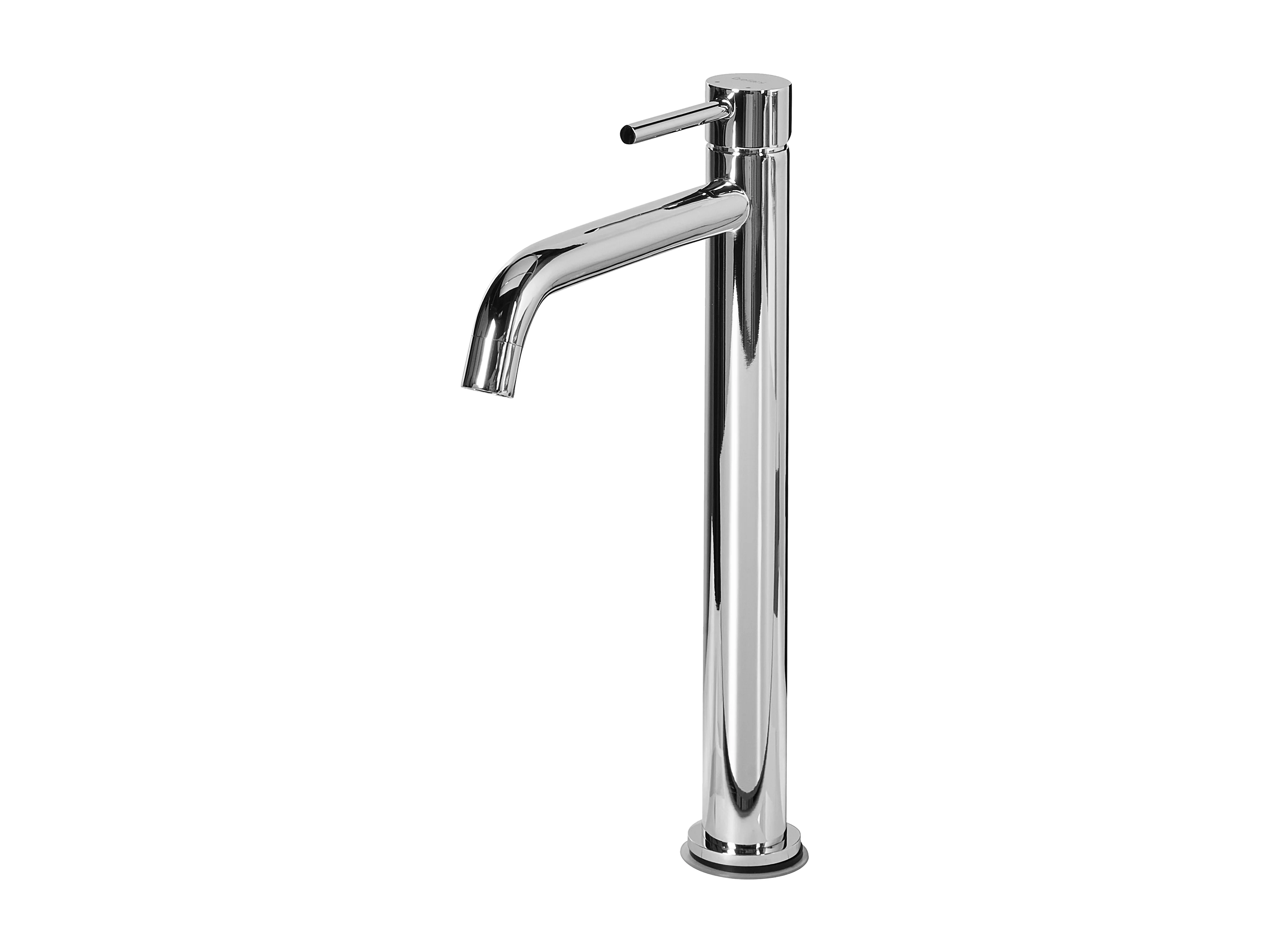 Mitigeur monotrou haut pour lavabo "Velthara" en laiton chromé pour plan de travail