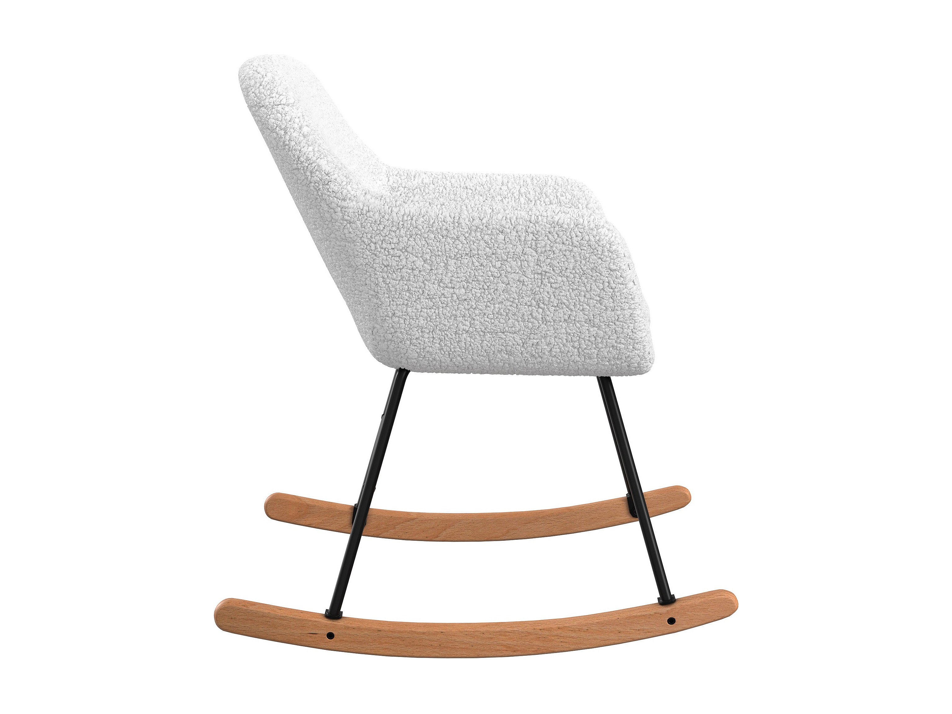 Rocking chair enfant en tissu effet peau de mouton blanc, métal noir et bois clair SHAUN