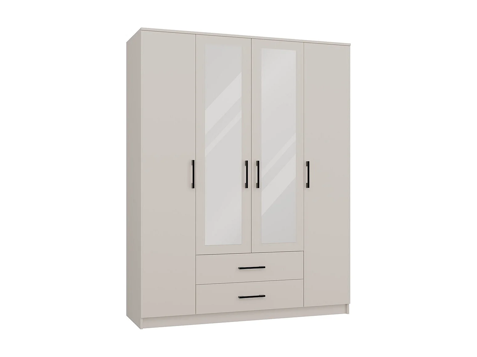 ROMA - Grande armoire de chambre 4 portes avec 2 miroirs - 160x52x205 cm - 2 tiroirs - Armoire avec penderie