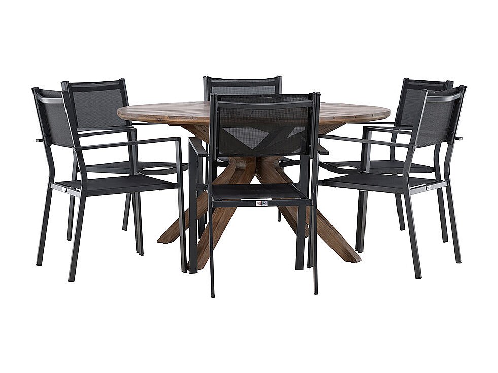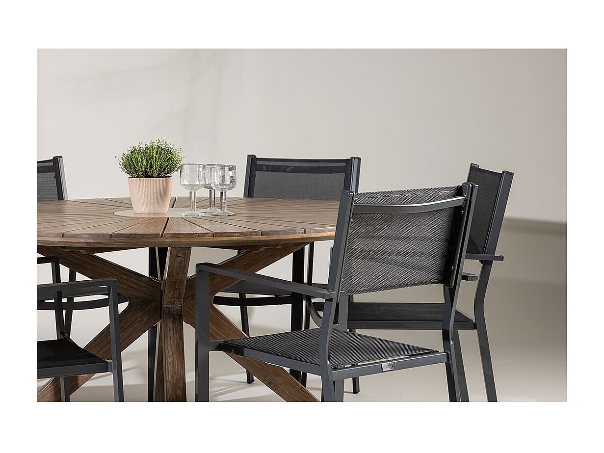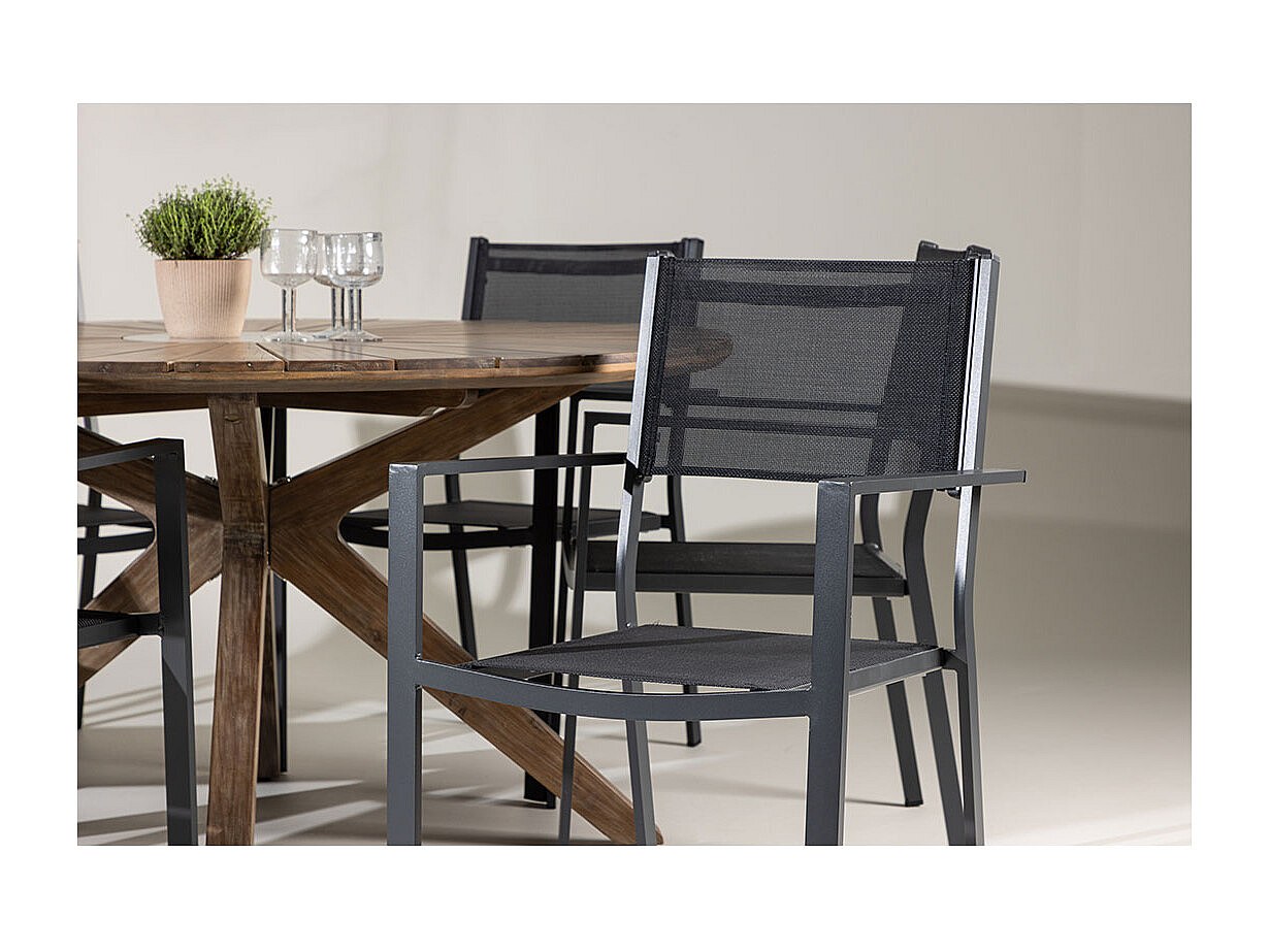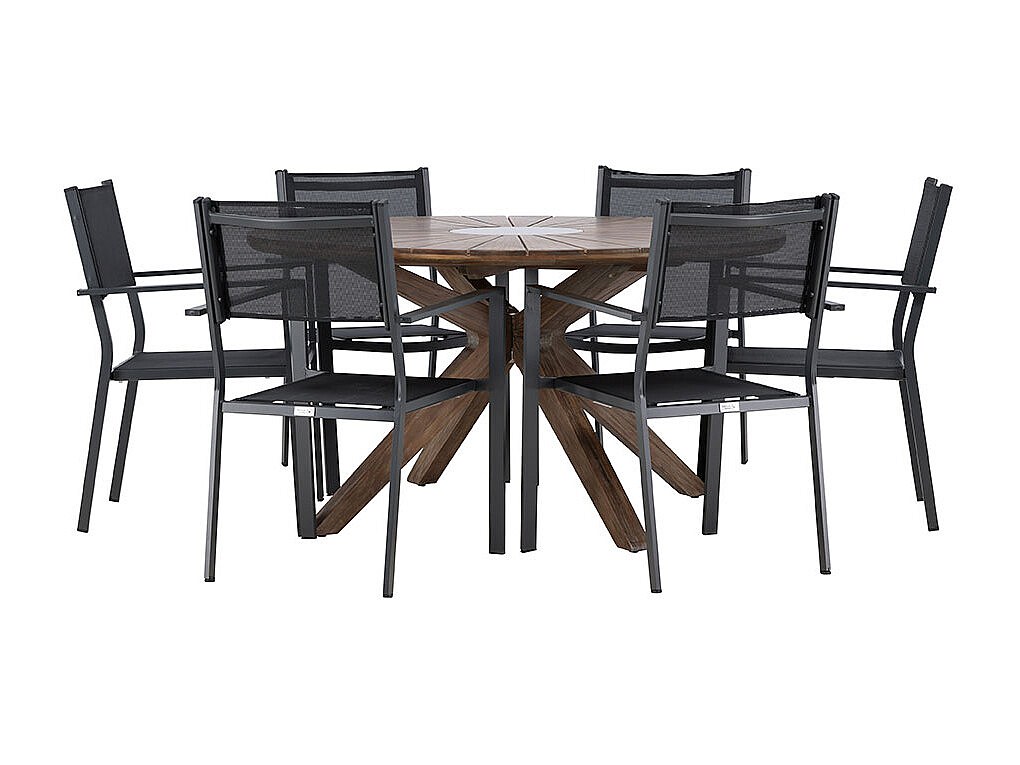 Rosario set de jardin table Ø140cm brun, 6 chaises noires.