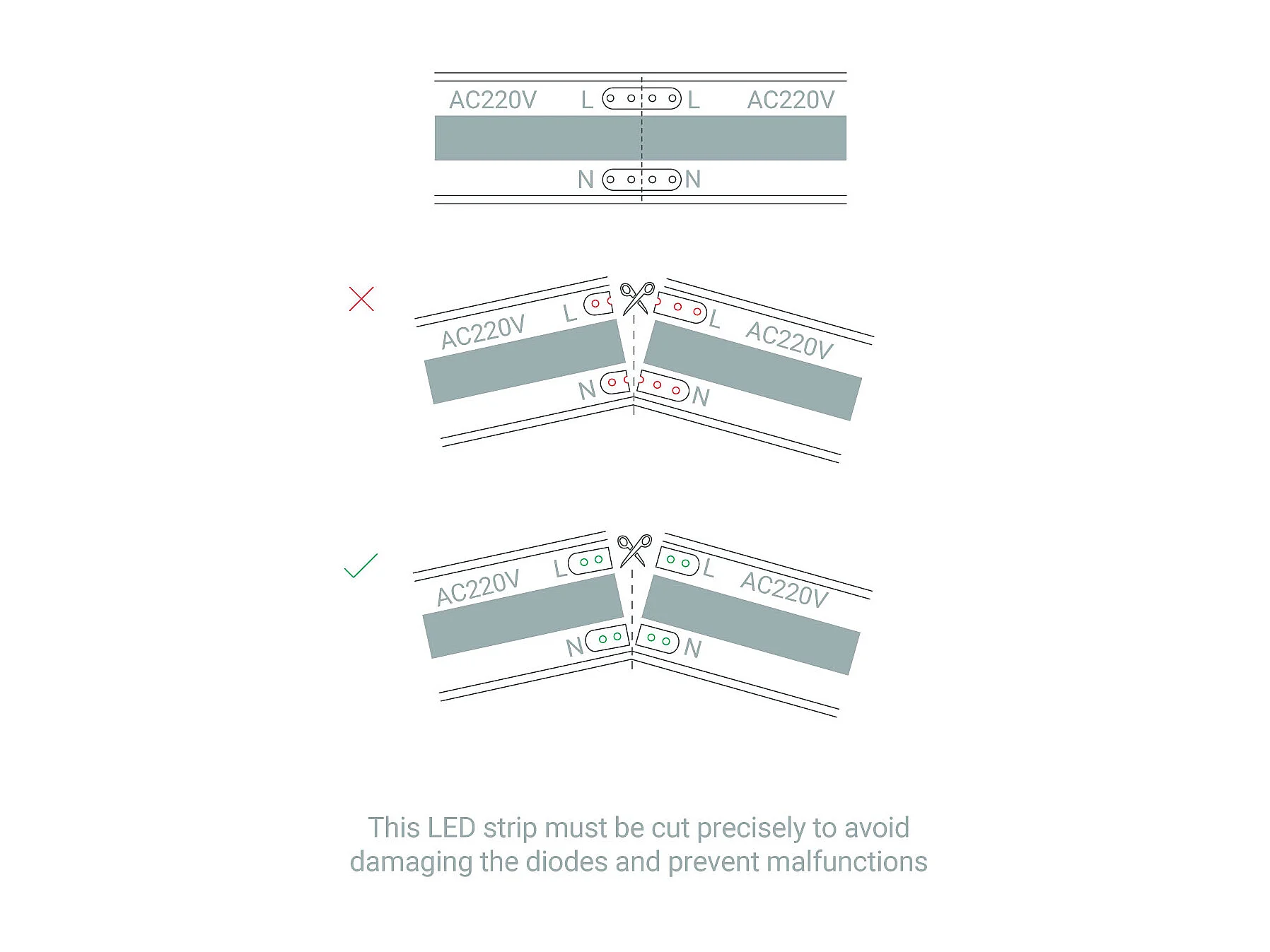 Ruban LED Dimmable 220V SMD Auto-redressement 120 LED/m 10W/m 1000lm/m Largeur 12mm Coupe 10cm IP65 Sur mesure 2700K Blanc chaud 2 m
