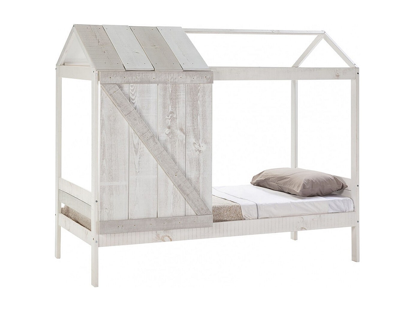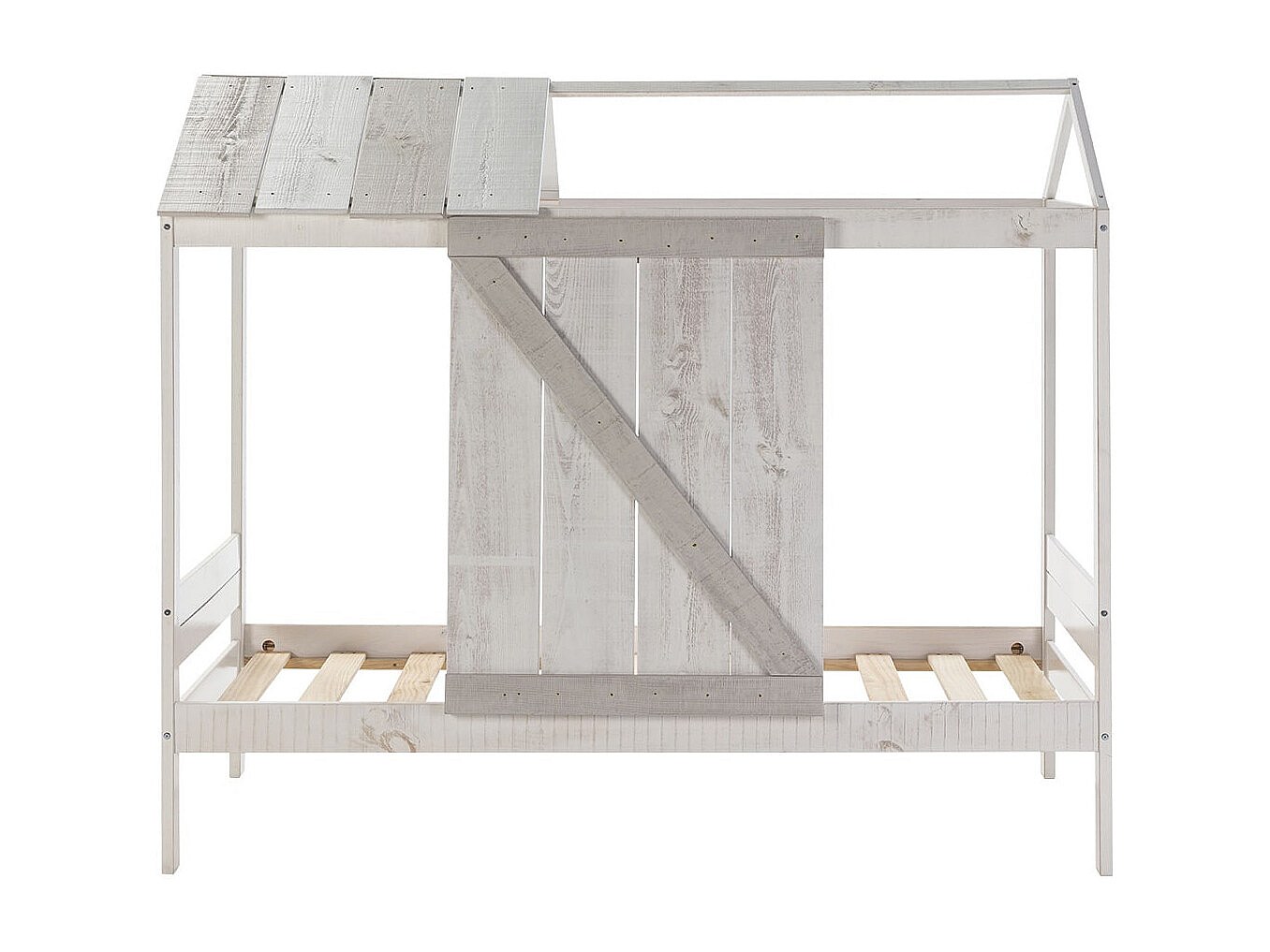 RUDDY - Lit Cabane 90x190cm Pin Massif Blanc et Gris Rustique
