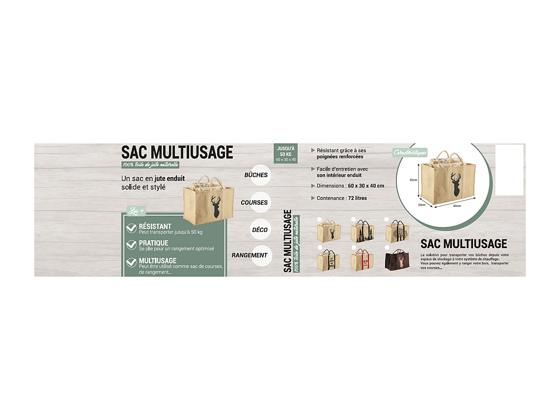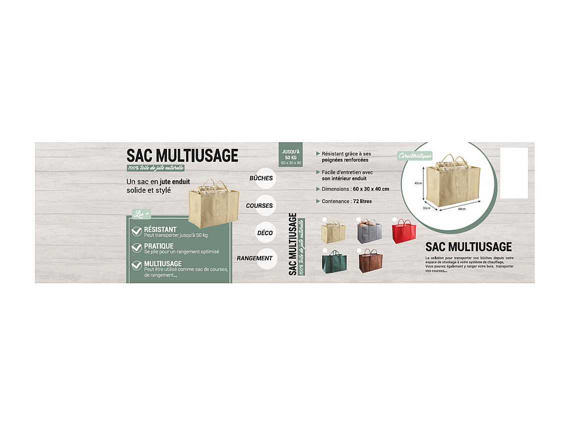 Lot de 6 Cagettes de Rangement "White Factory" 40cm Naturel