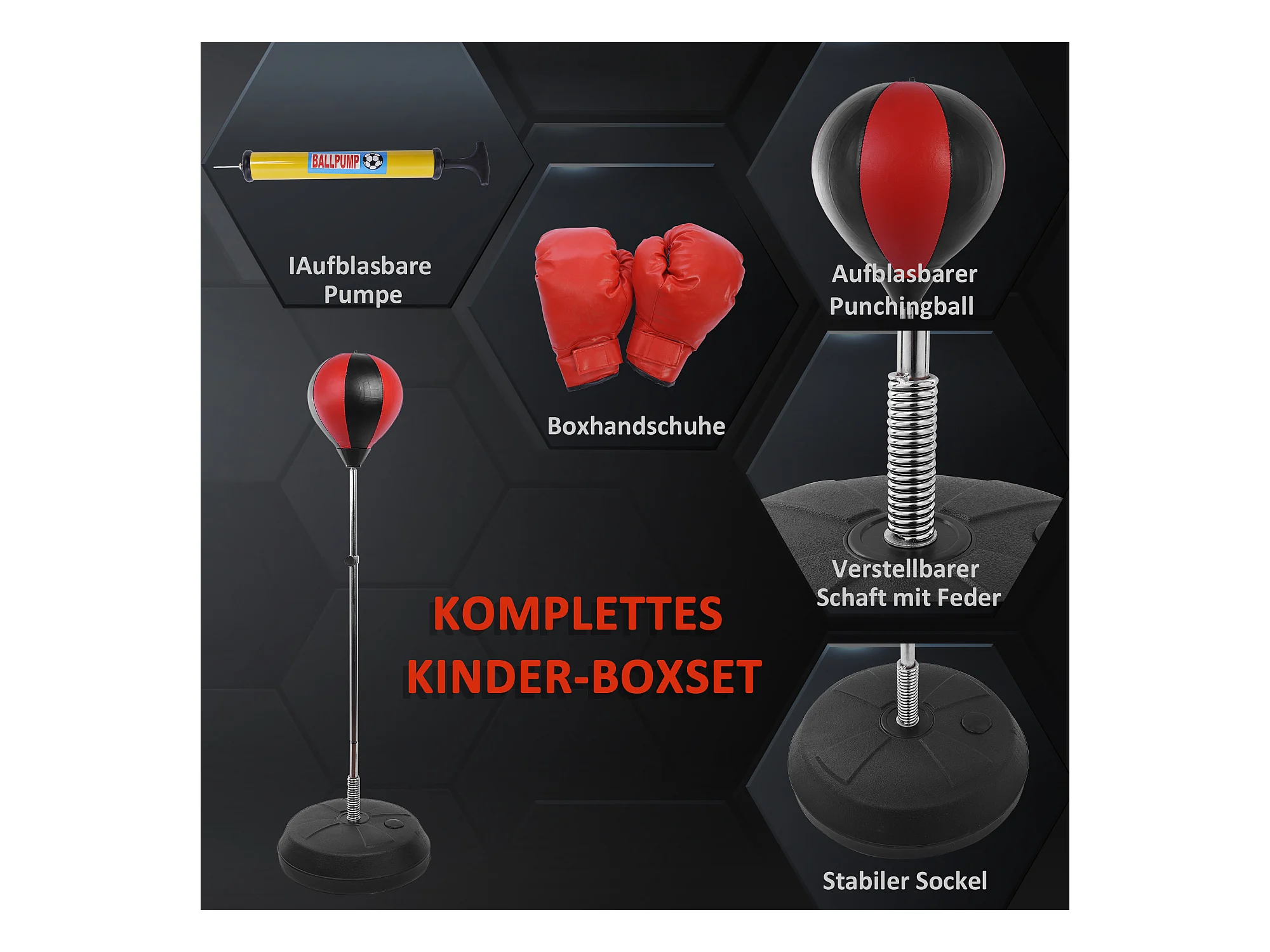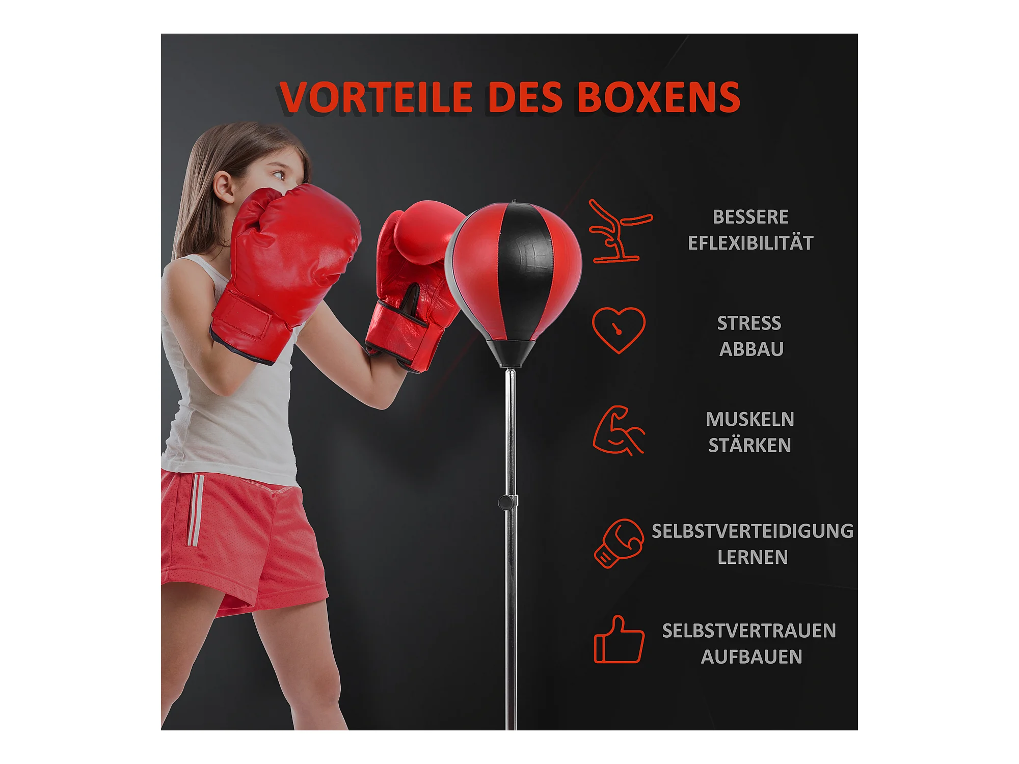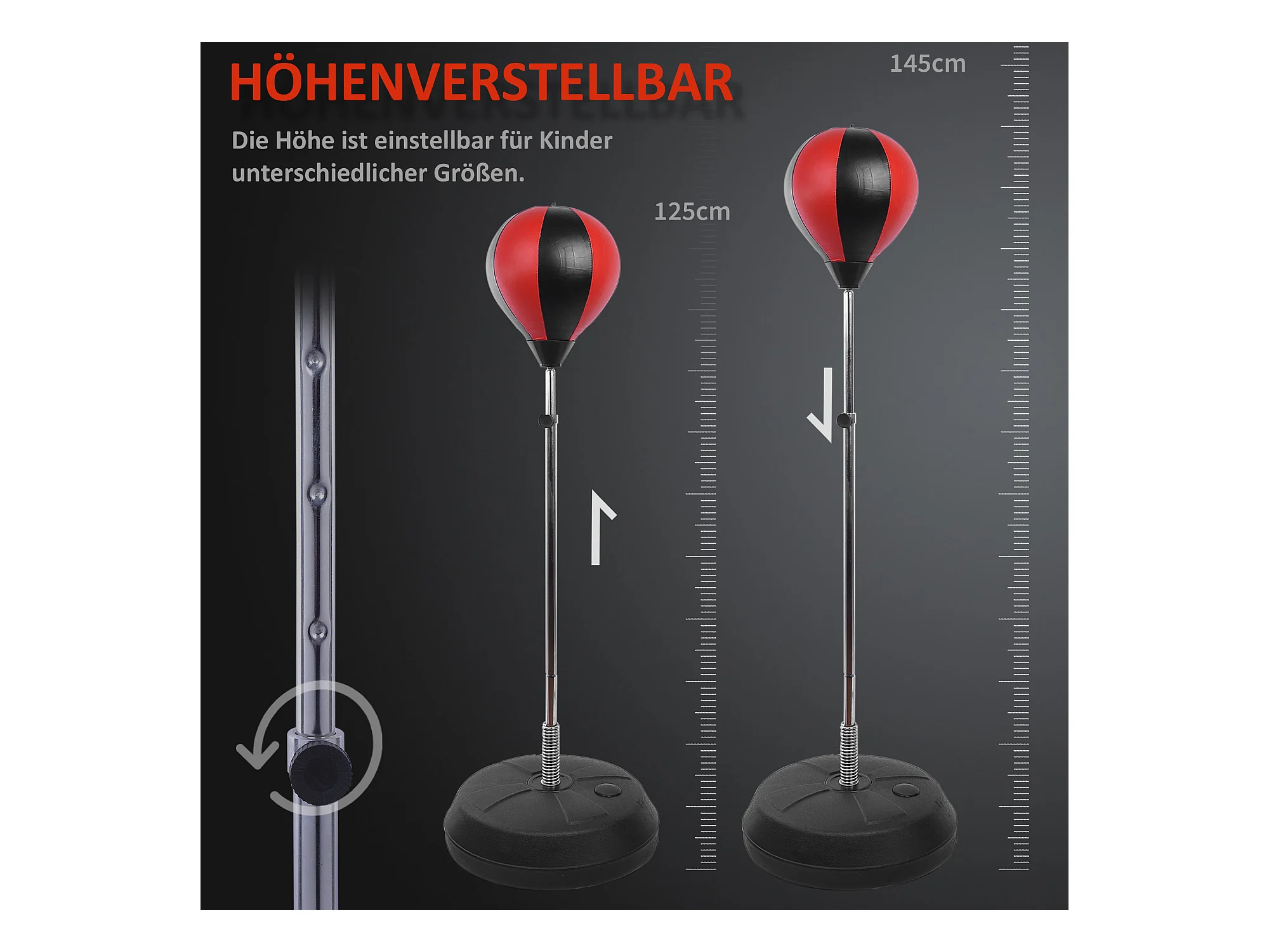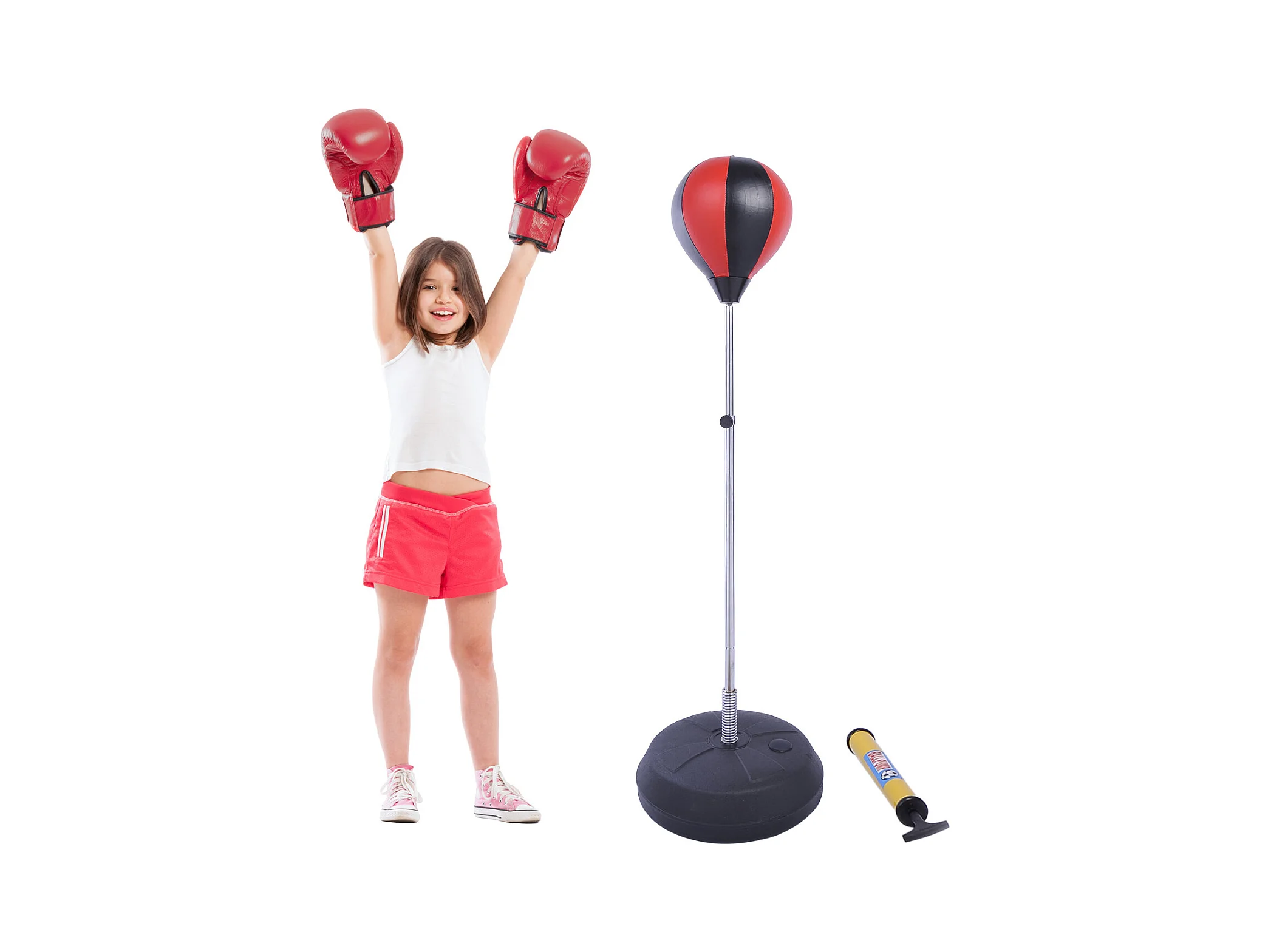 Sac de boxe réglable pour enfants 5-10 ans, avec gants, plastique, rouge (44.3x44.3x147 cm)