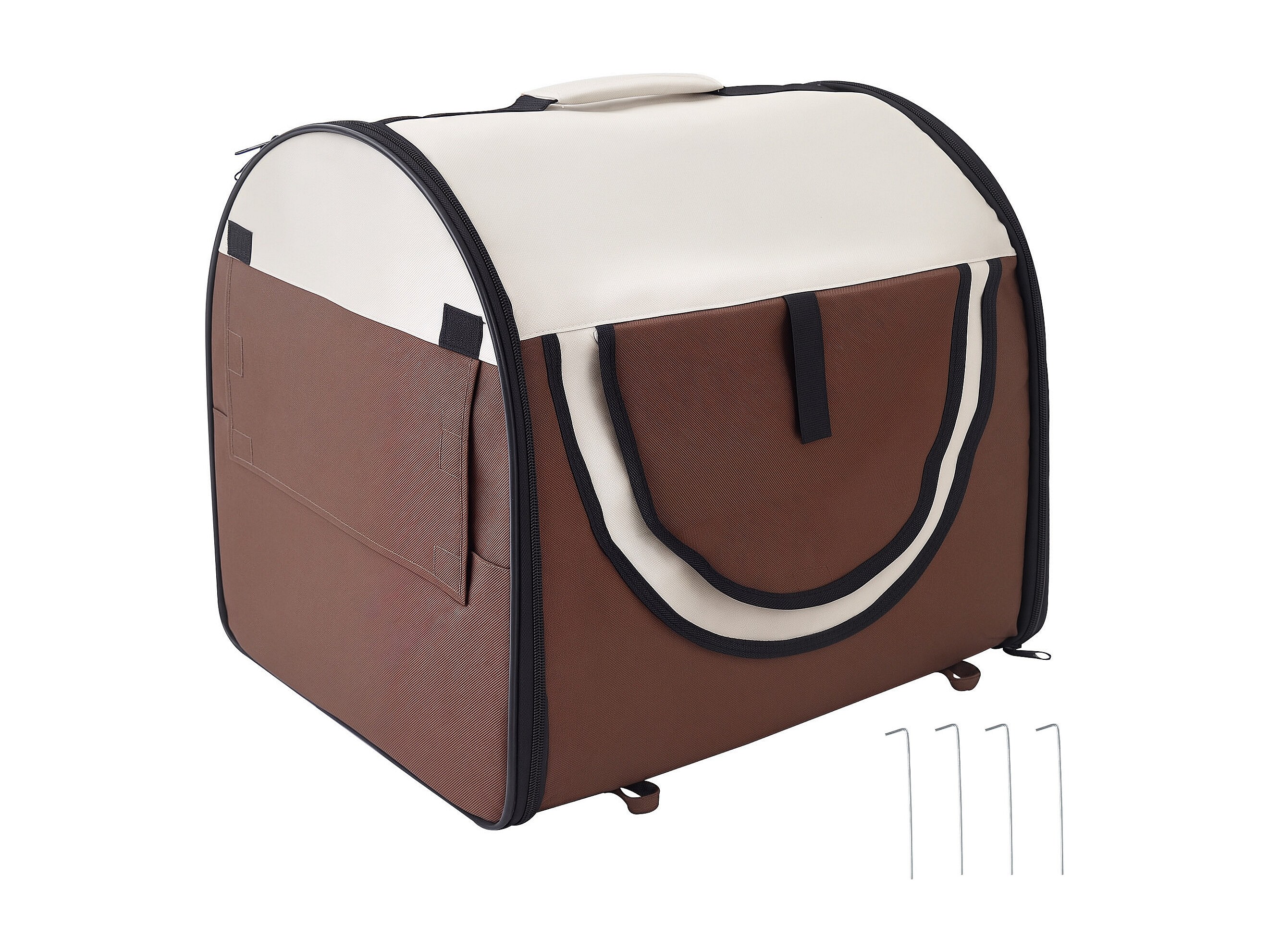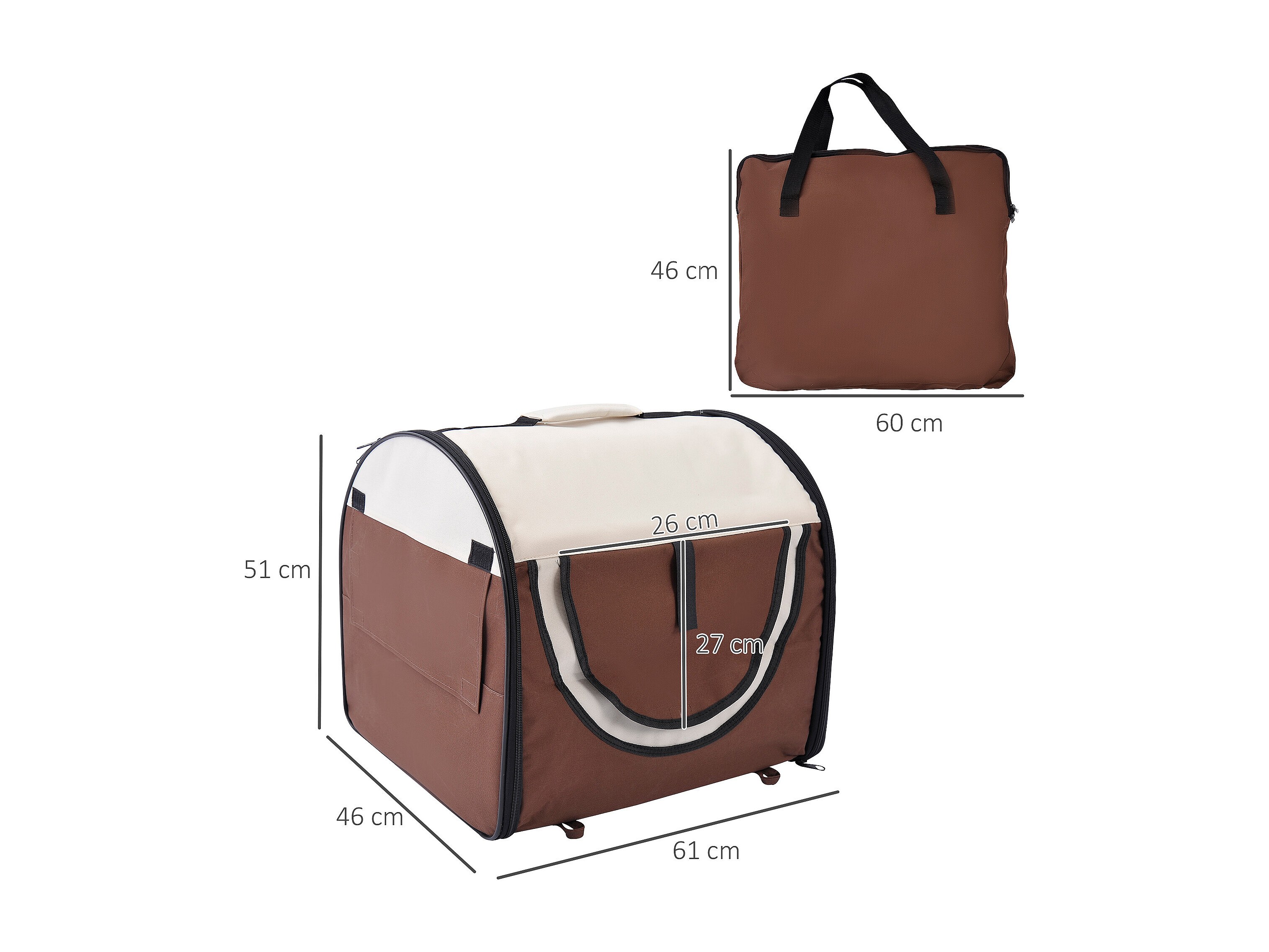 Sac de transport pour chien et chat pliable - poignée, entrée zippée, fenêtres maillées enroulables- coussin inclus - acier oxford marron beige