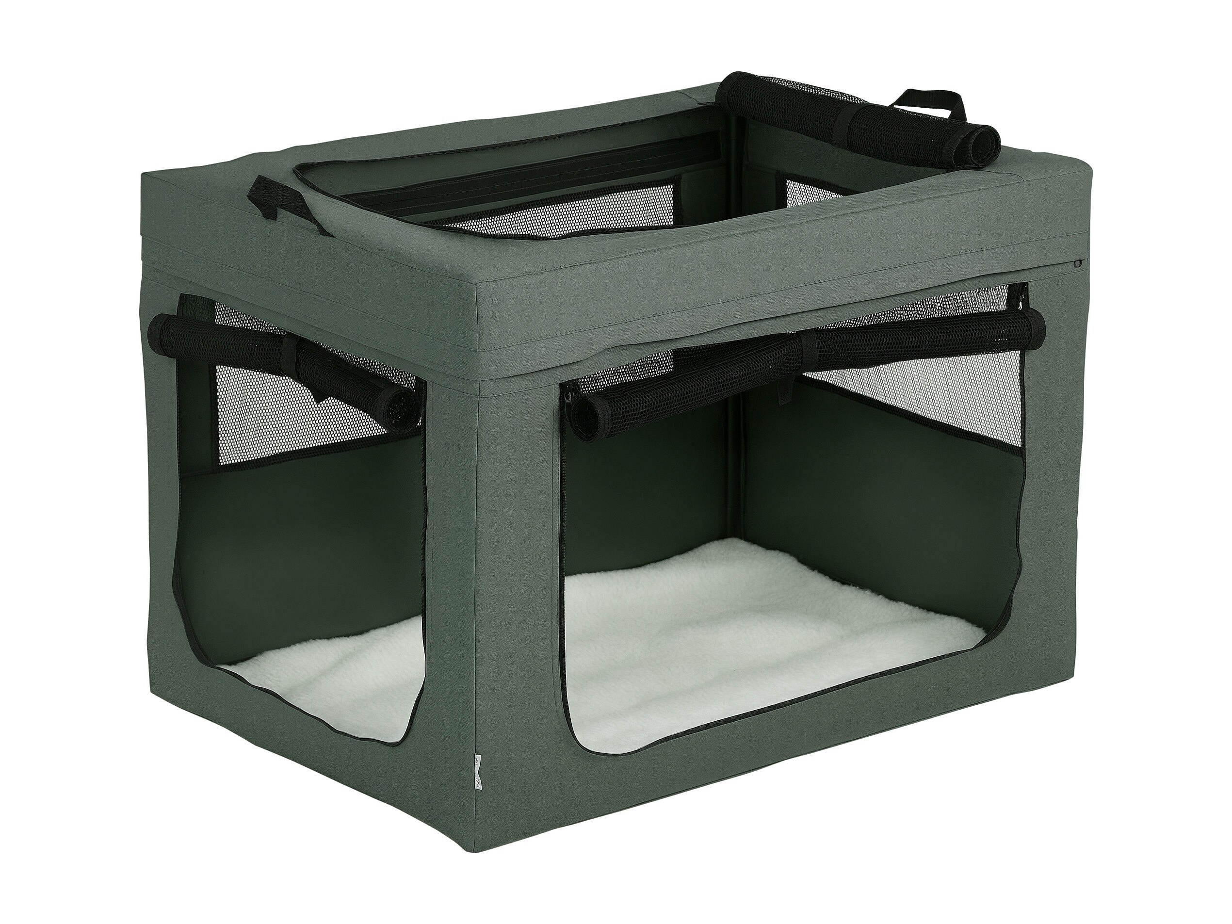 Sac de transport pliable pour chien chat - 2 poignées, 3 portes - dim. 89L x 62l x 62H cm - acier polyester gris