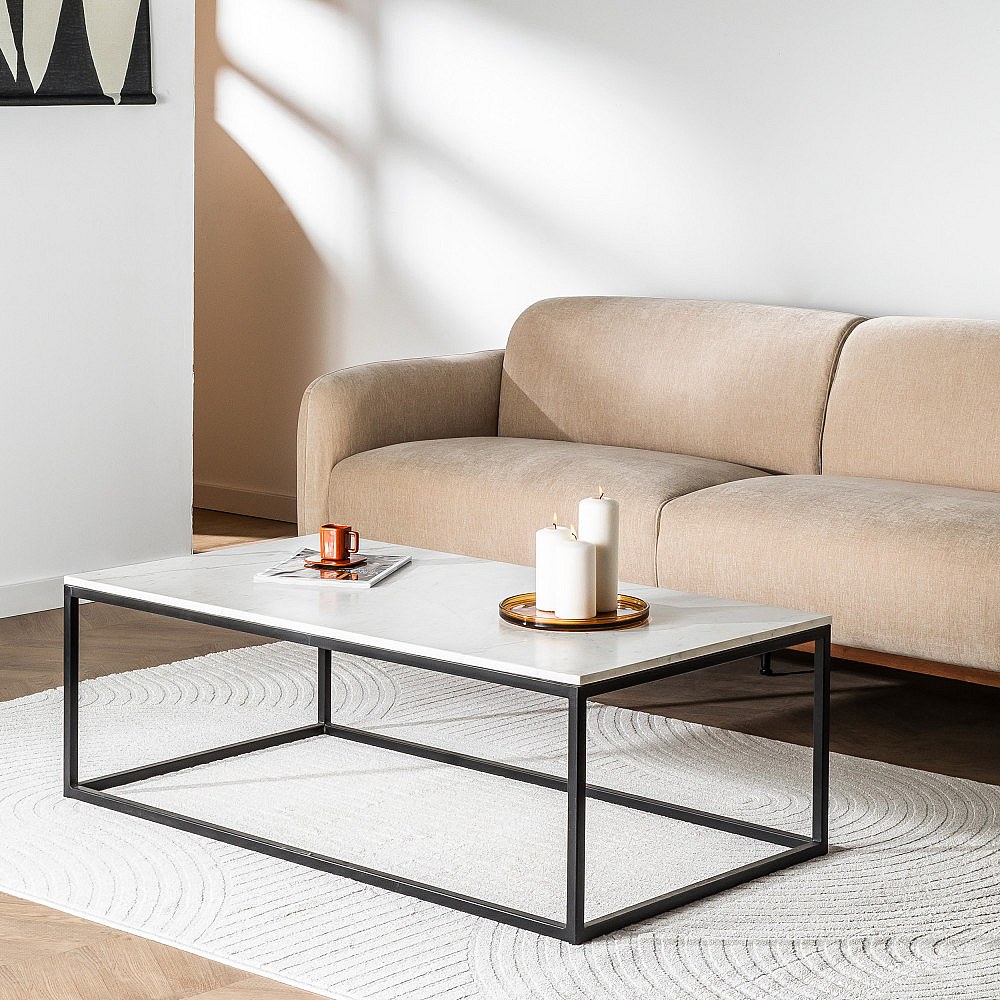 Saku - Table basse en marbre et métal 120x65cm - Blanc