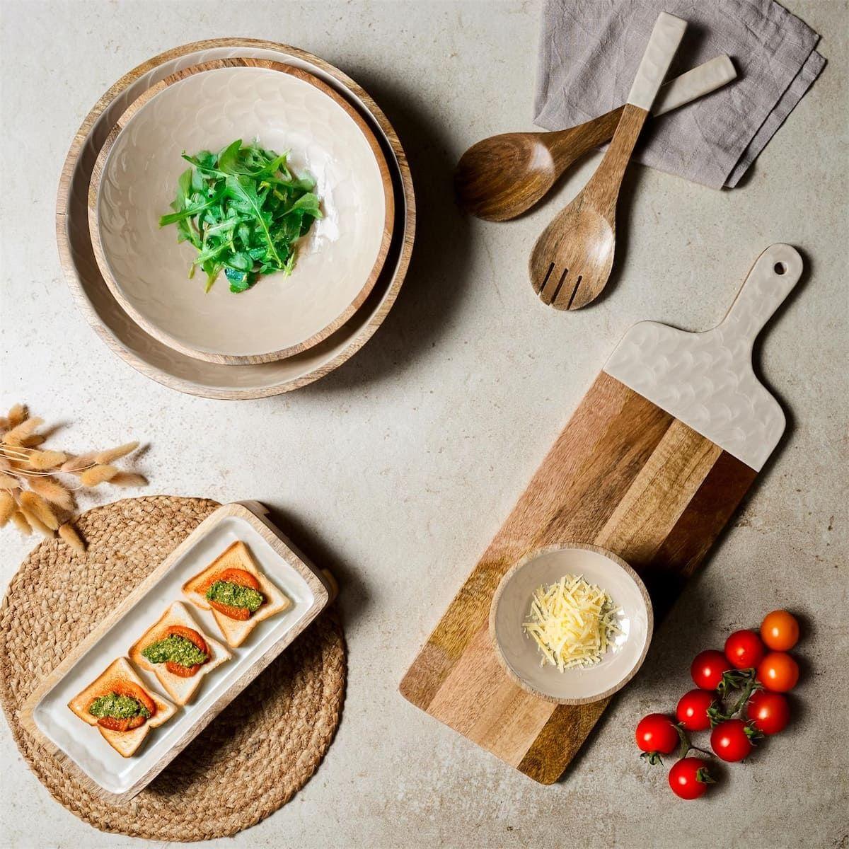Saladier en bois de manguier avec intérieur texturé nid d'abeille beige (Ø27,5 cm)