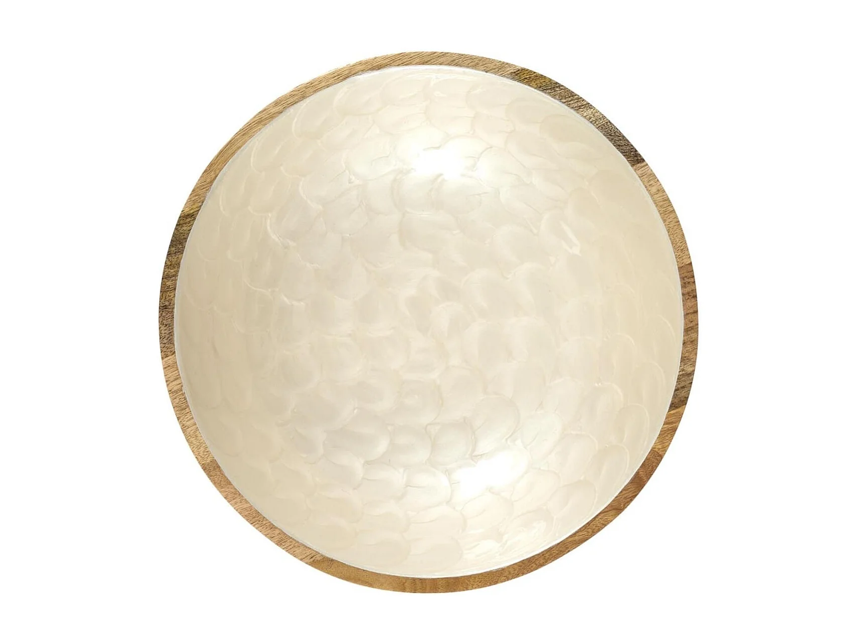 Saladier en bois de manguier avec intérieur texturé nid d'abeille beige (Ø33 cm)
