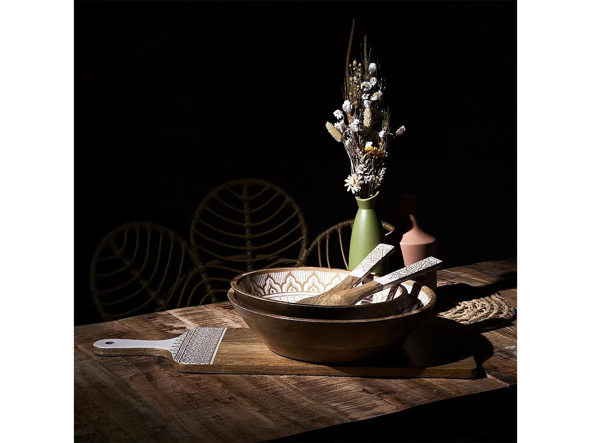 Saladier en bois de manguier avec motif mandala brun (Ø33cm) - MANGO