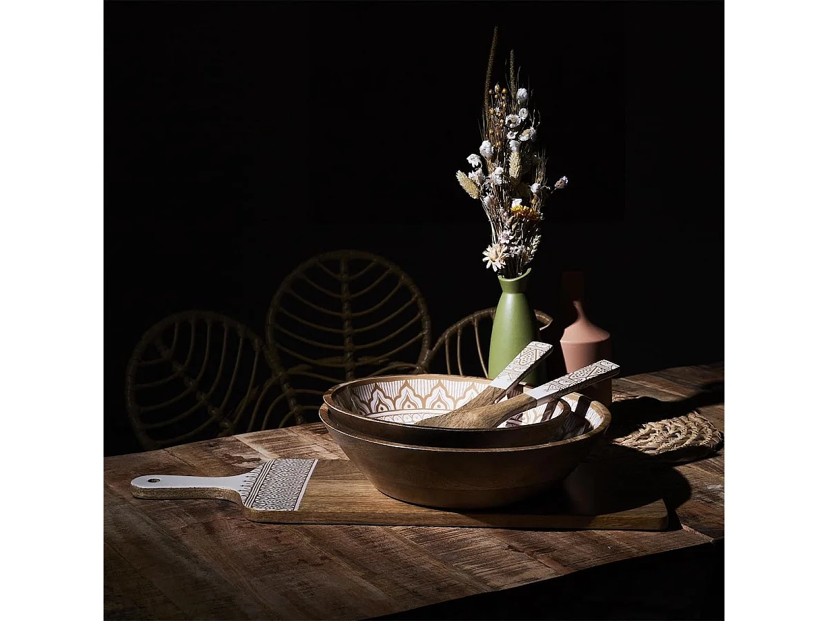 Saladier en bois de manguier avec motif mandala brun (Ø28 cm) - MANGO