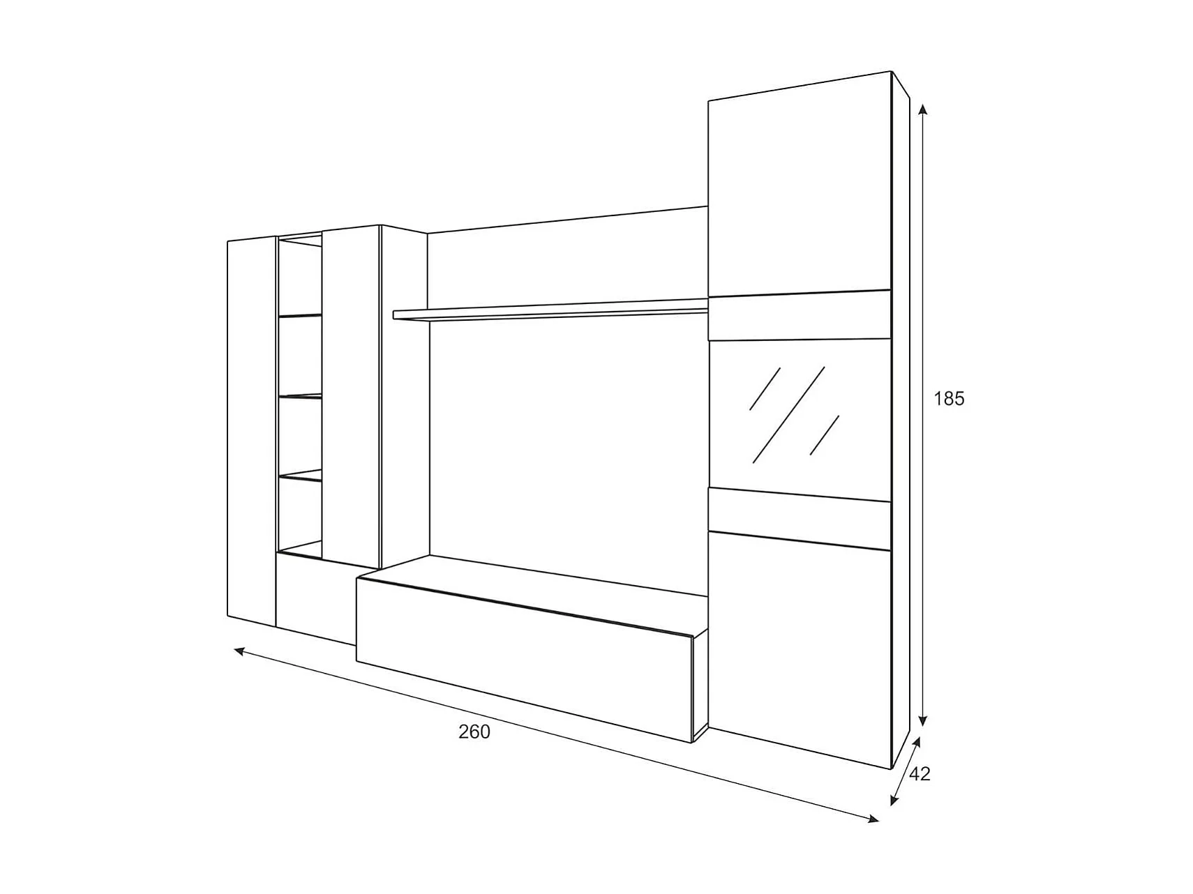 Meuble TV LED Blanc Brillant et Chêne - Salon Moderne 260 cm