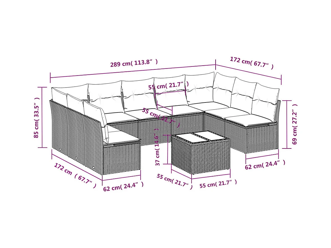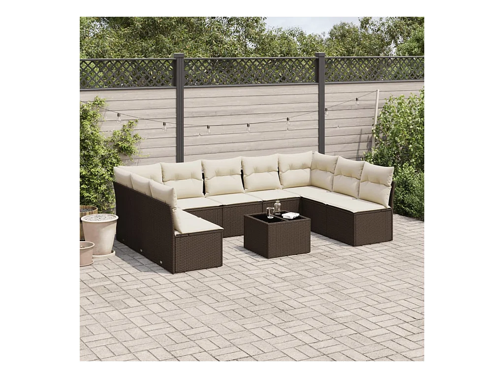 Salon de jardin 10 pcs avec coussins marron résine tressée