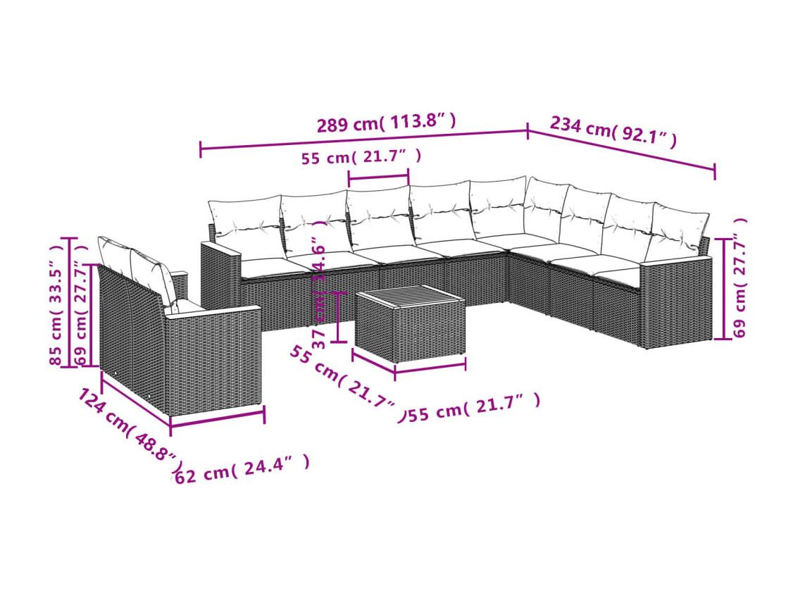Salon de jardin 11 pcs avec coussins beige résine tressée