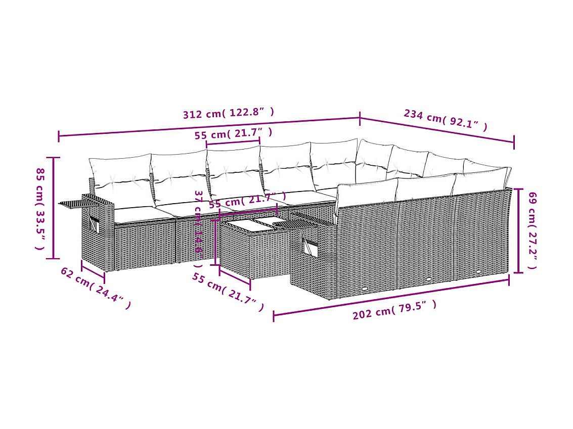 Salon de jardin 11 pcs avec coussins noir résine tressée