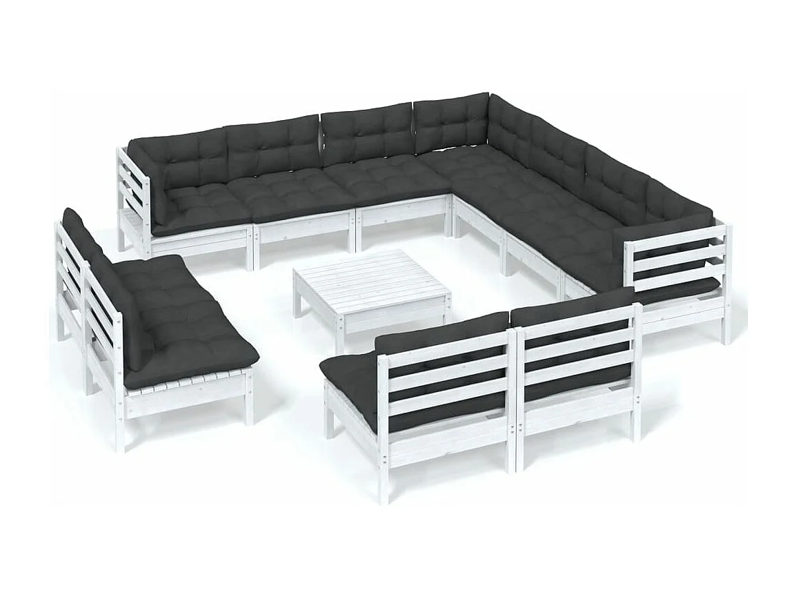 Salon de jardin 12 pcs avec coussins Blanc Bois de pin solide 2