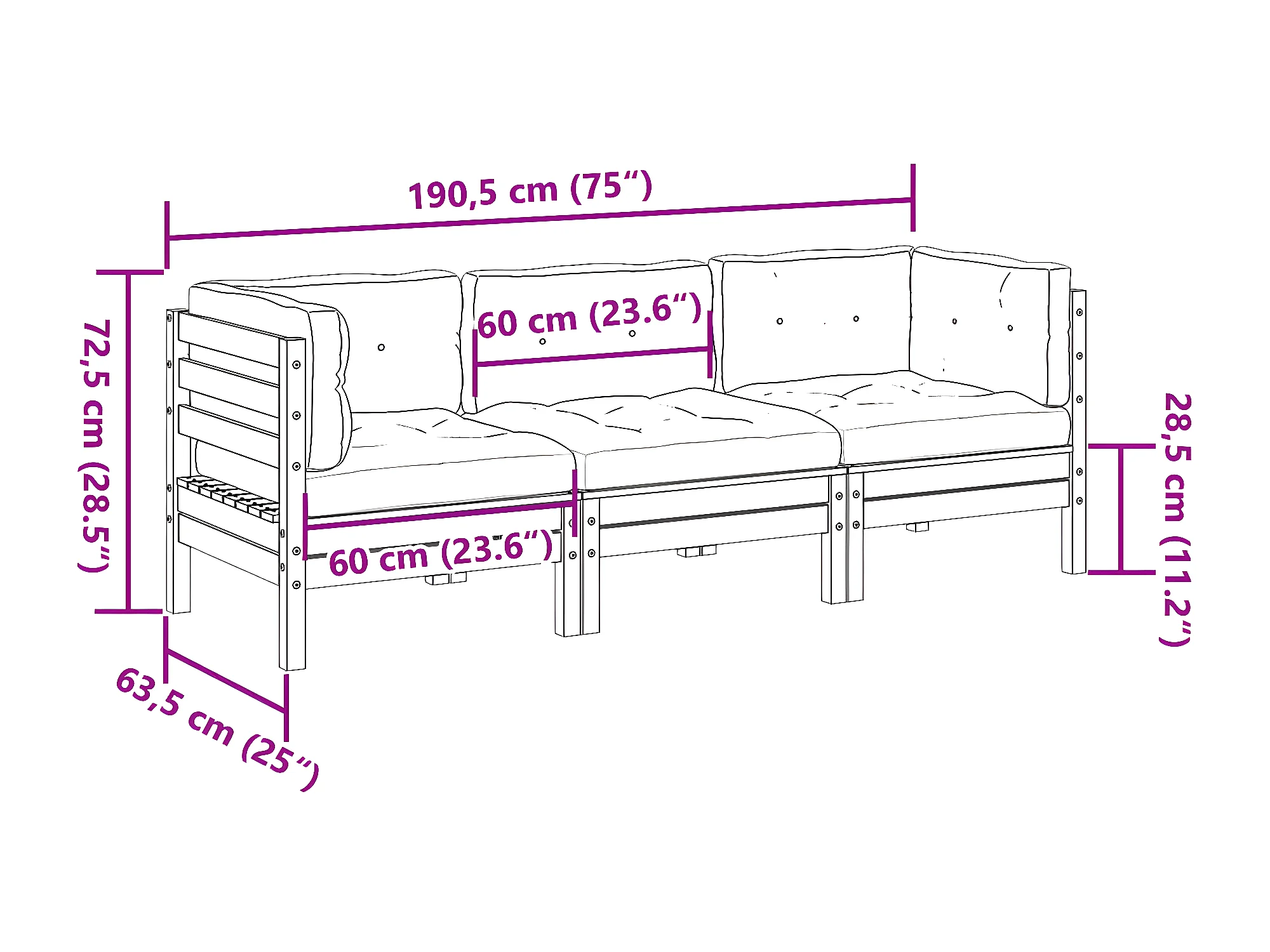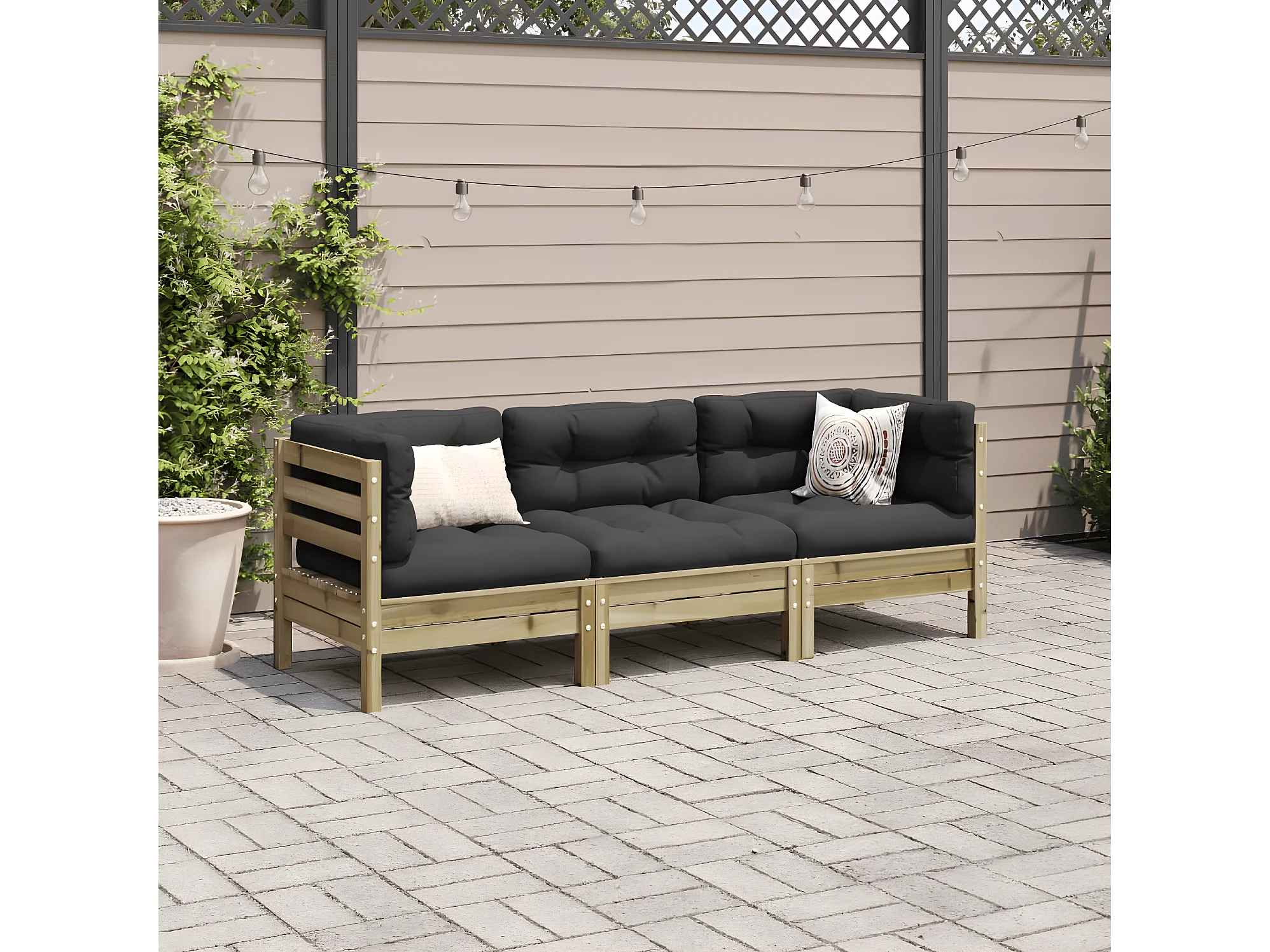 Salon de jardin 3 pcs avec coussins bois de pin imprégné