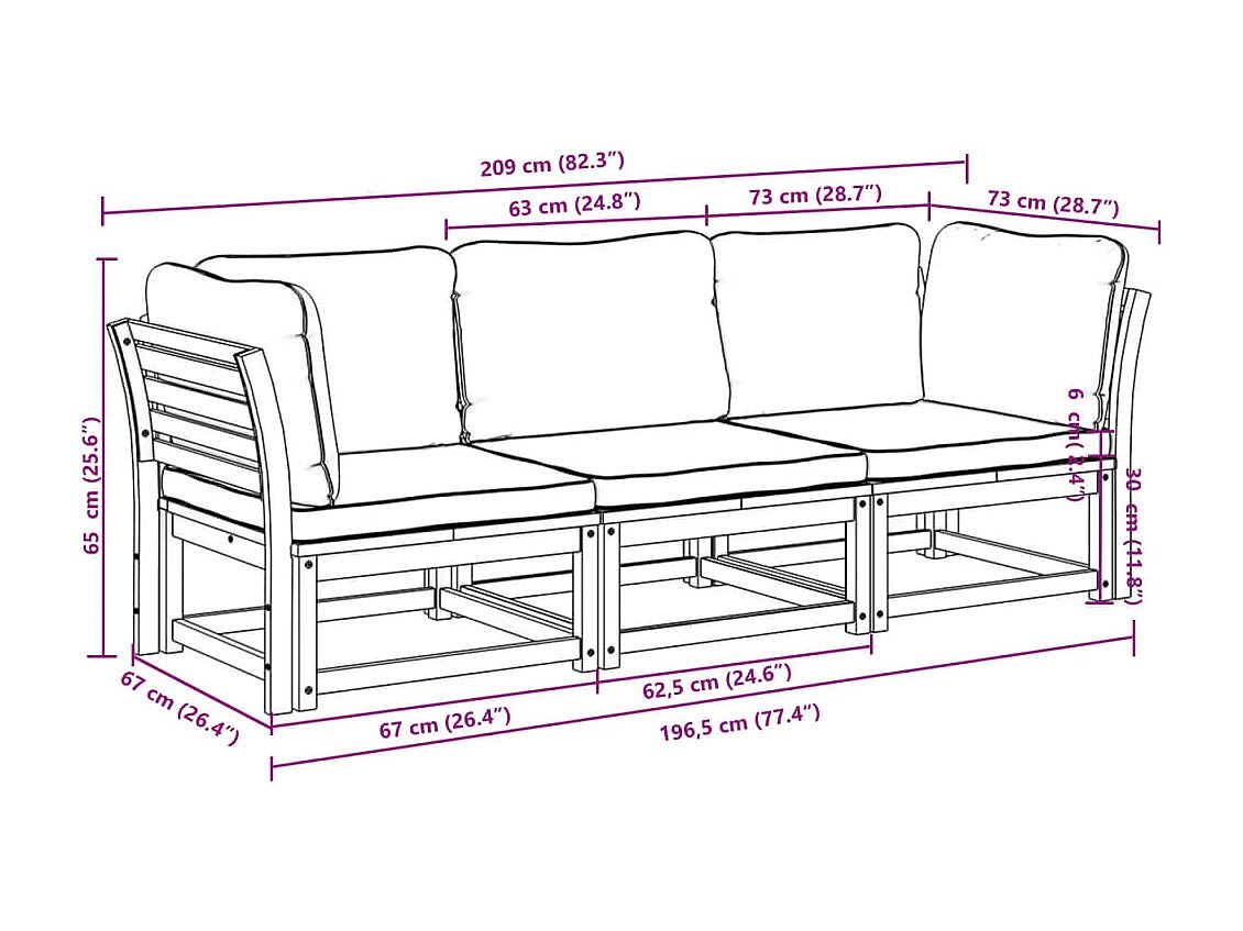 Salon de jardin 3 pcs avec coussins bois massif d'acacia
