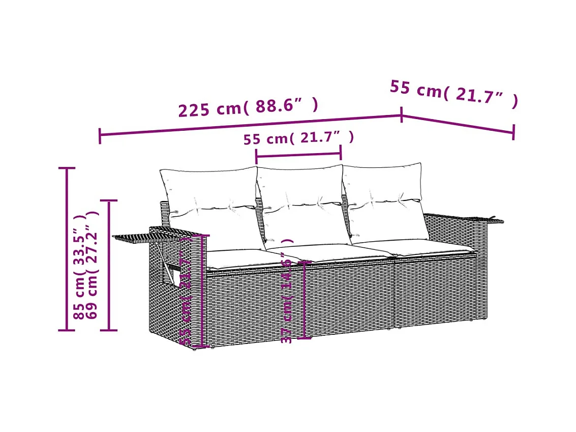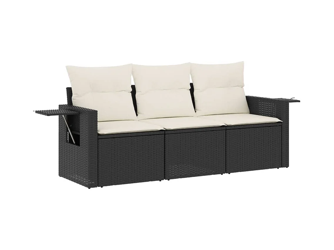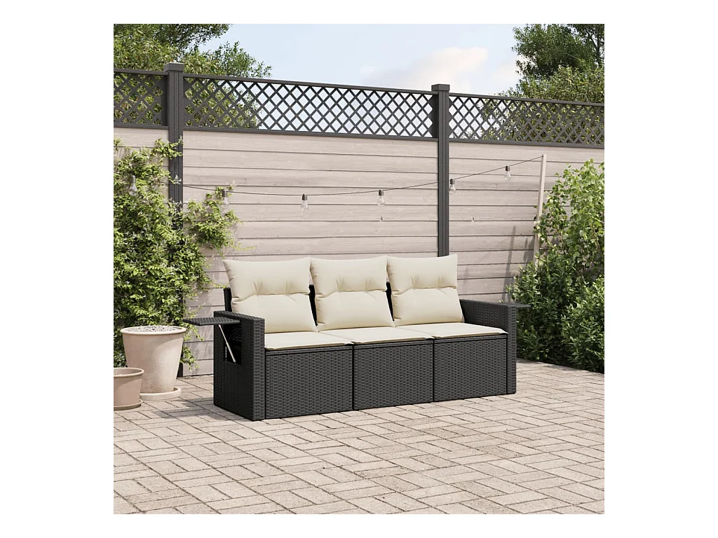 Salon de jardin 3 pcs avec coussins noir résine tressée FR14405