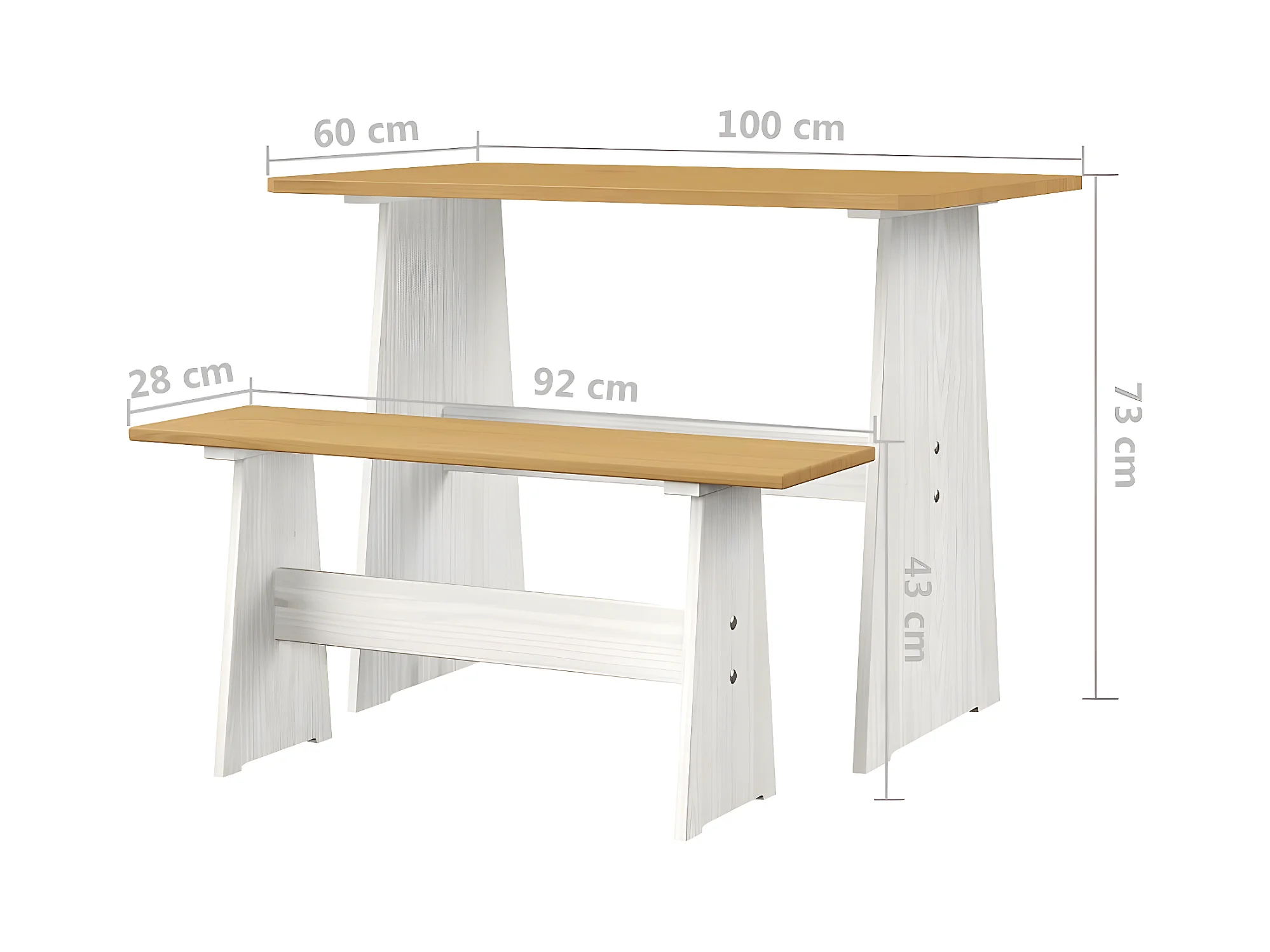 Salon de jardin 3 pcs Marron miel et Blanc Bois de pin massif