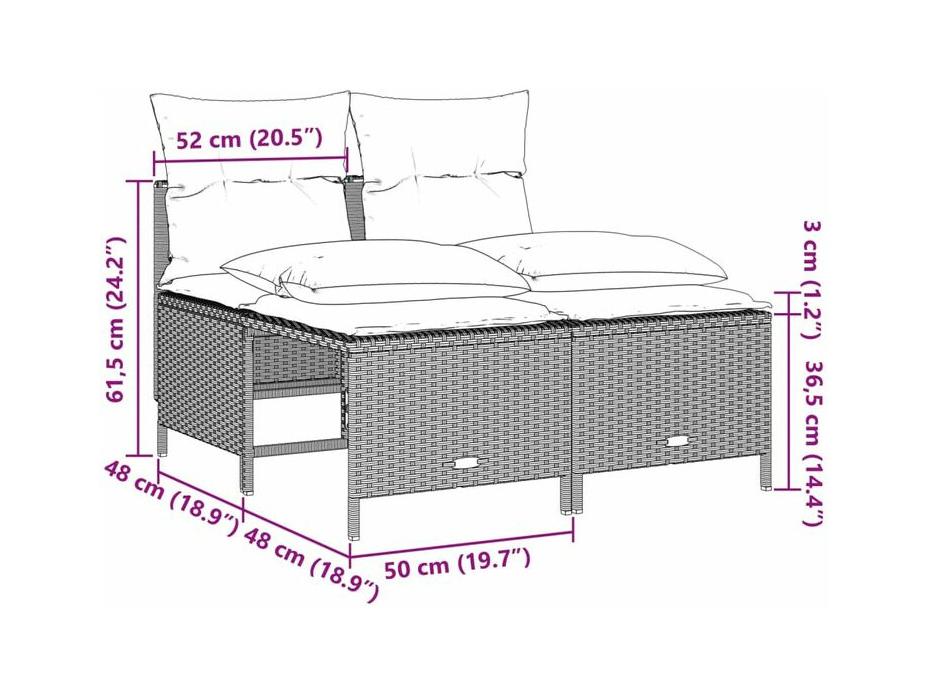 Salon de jardin 4 pcs avec coussins gris clair résine tressée