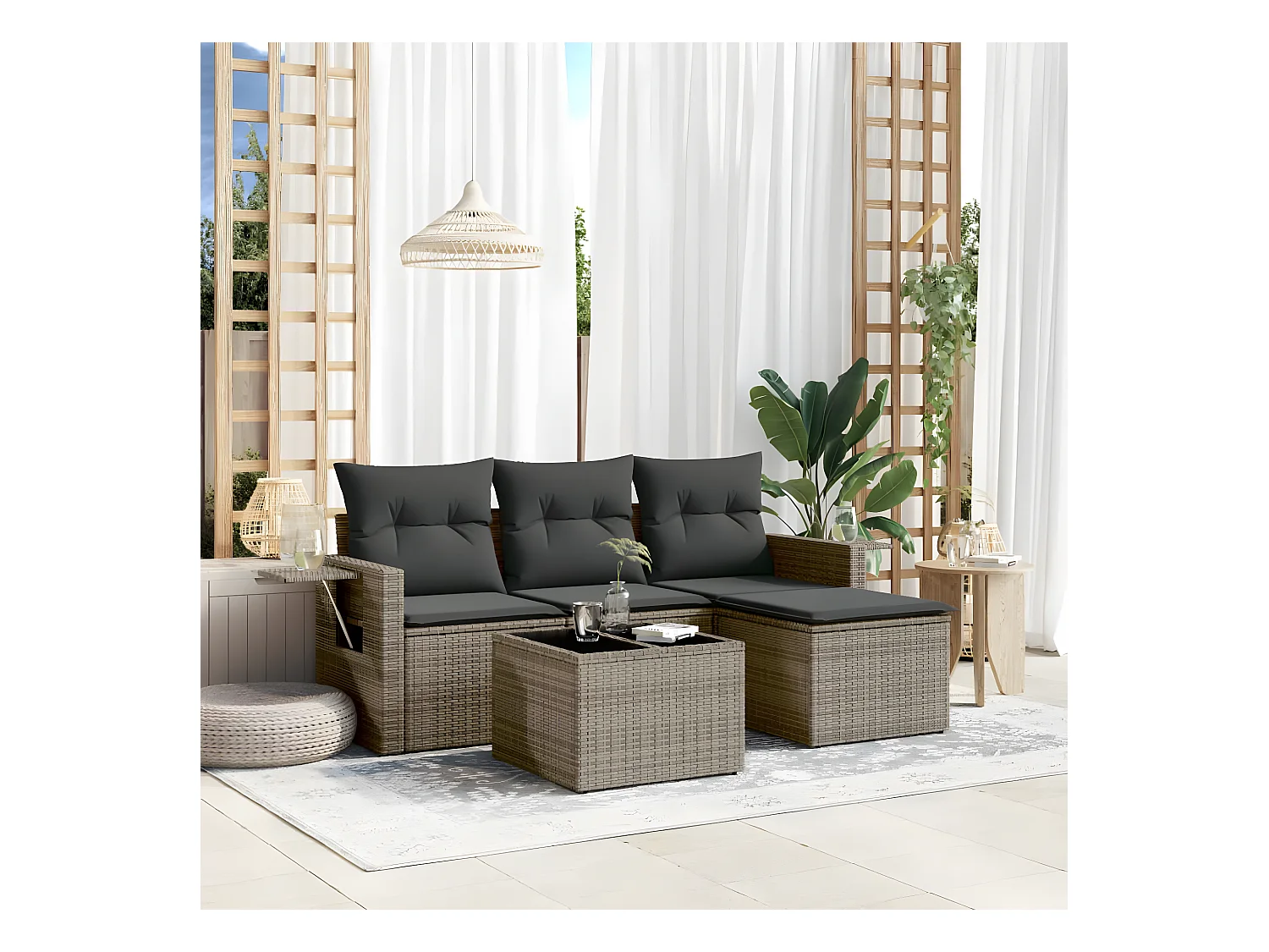 Salon de jardin 4 pcs avec coussins gris résine tressée