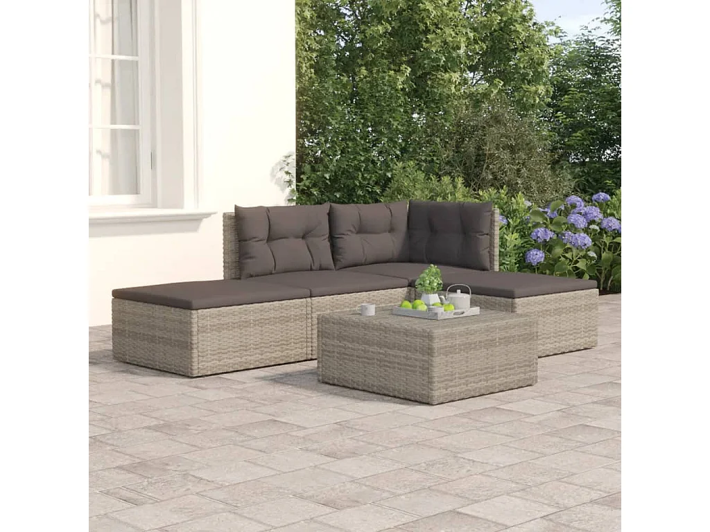Salon de jardin 4 pcs avec coussins Gris Résine tressée