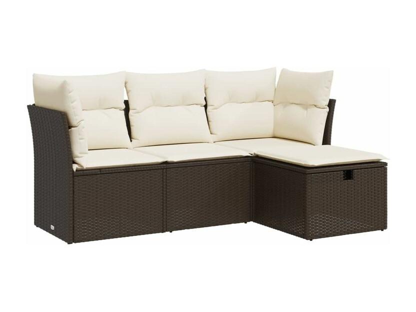Salon de jardin 4 pcs avec coussins marron résine tressée