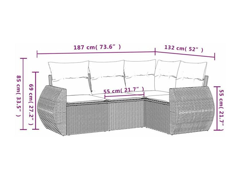 Salon de jardin 4 pcs avec coussins marron résine tressée