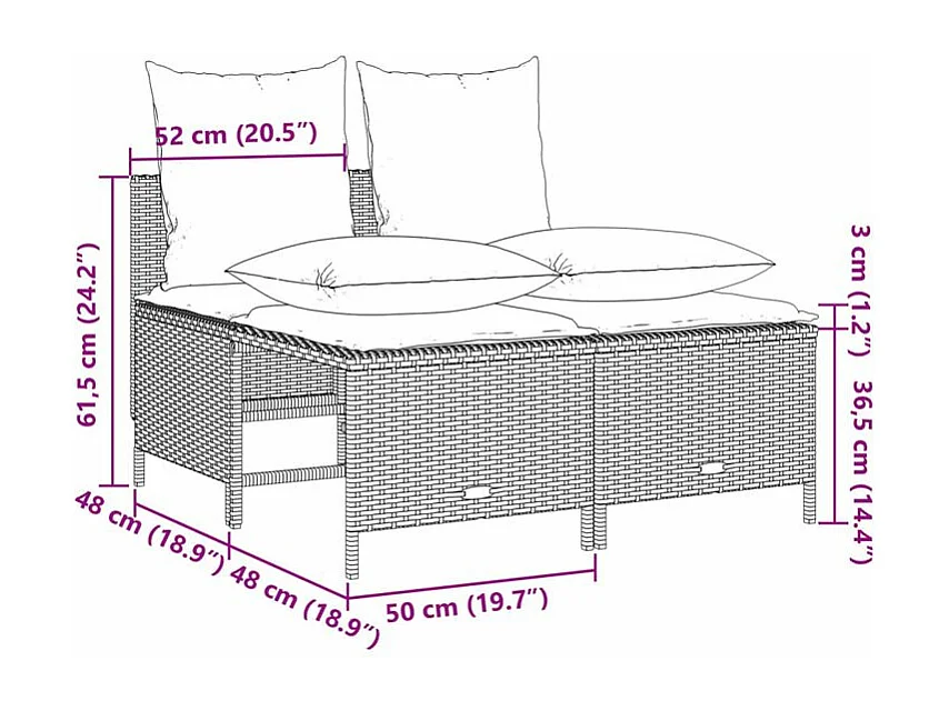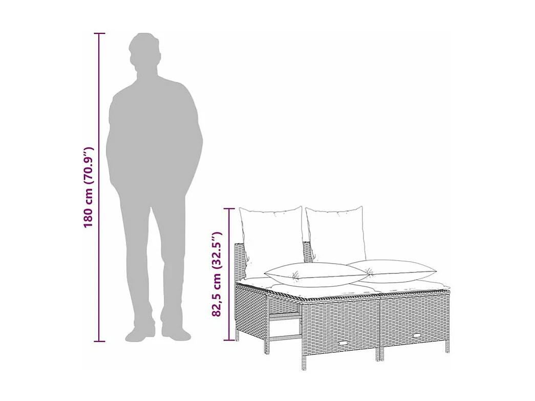 Salon de jardin 4 pcs avec coussins marron résine tressée