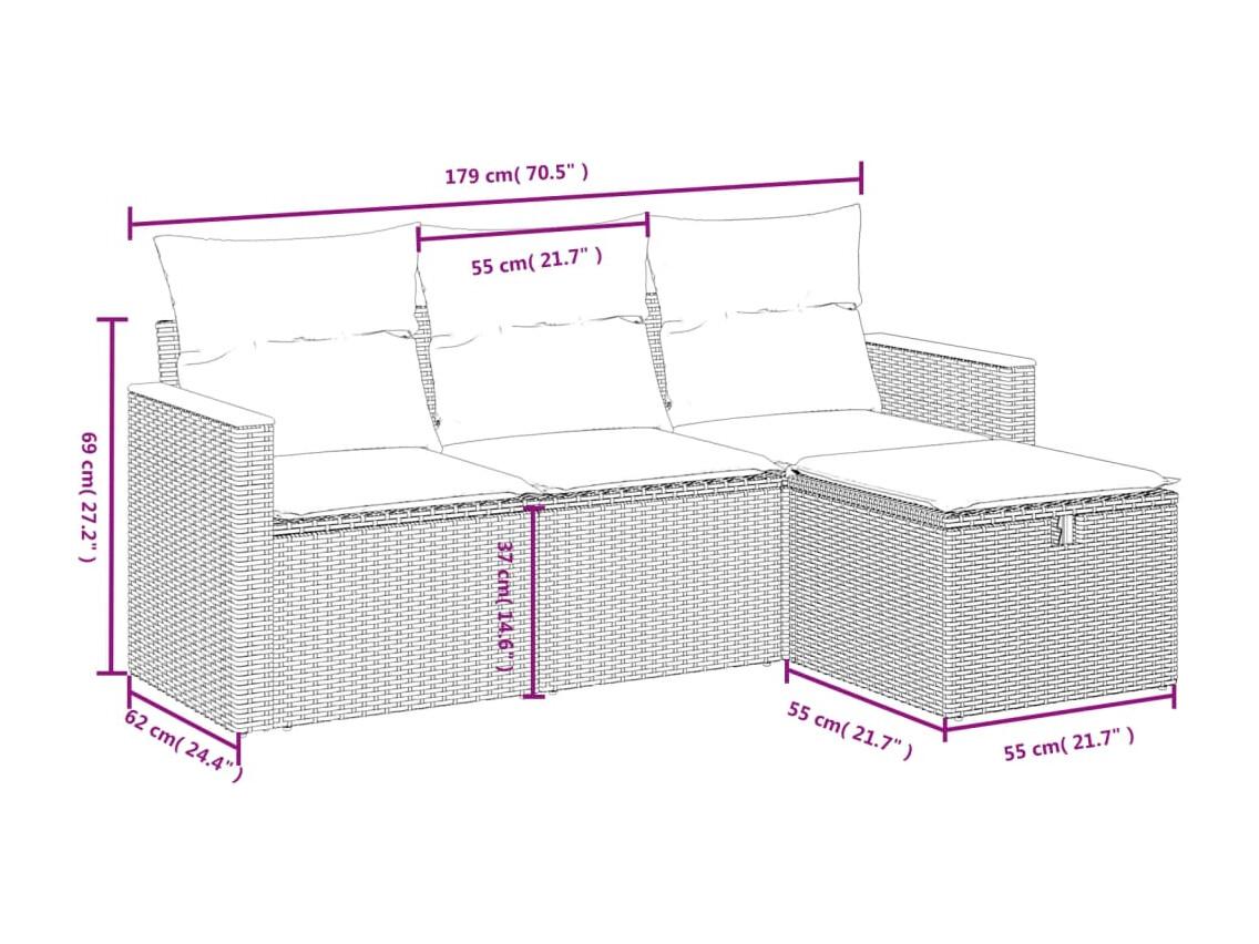 Salon de jardin 4 pcs avec coussins noir résine tressée FR23862