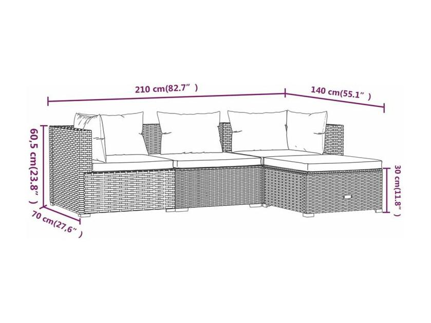 Salon de jardin 4 pcs avec coussins Résine tressée Noir