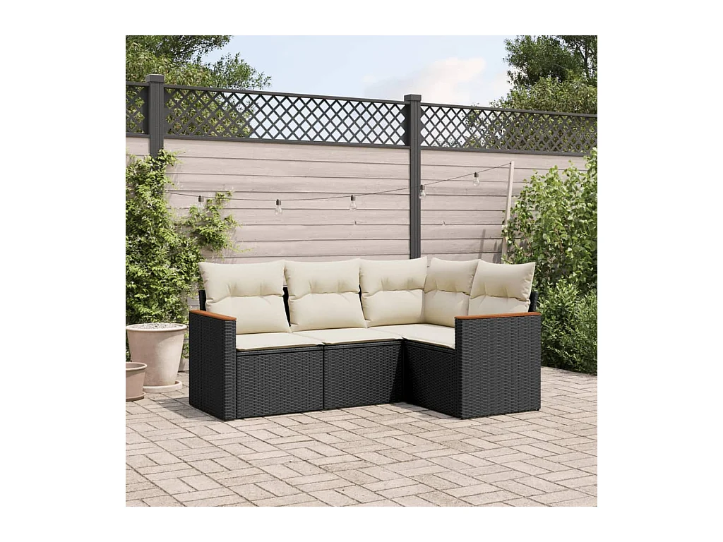 Salon de jardin 4 pièces avec coussins noir résine tressée