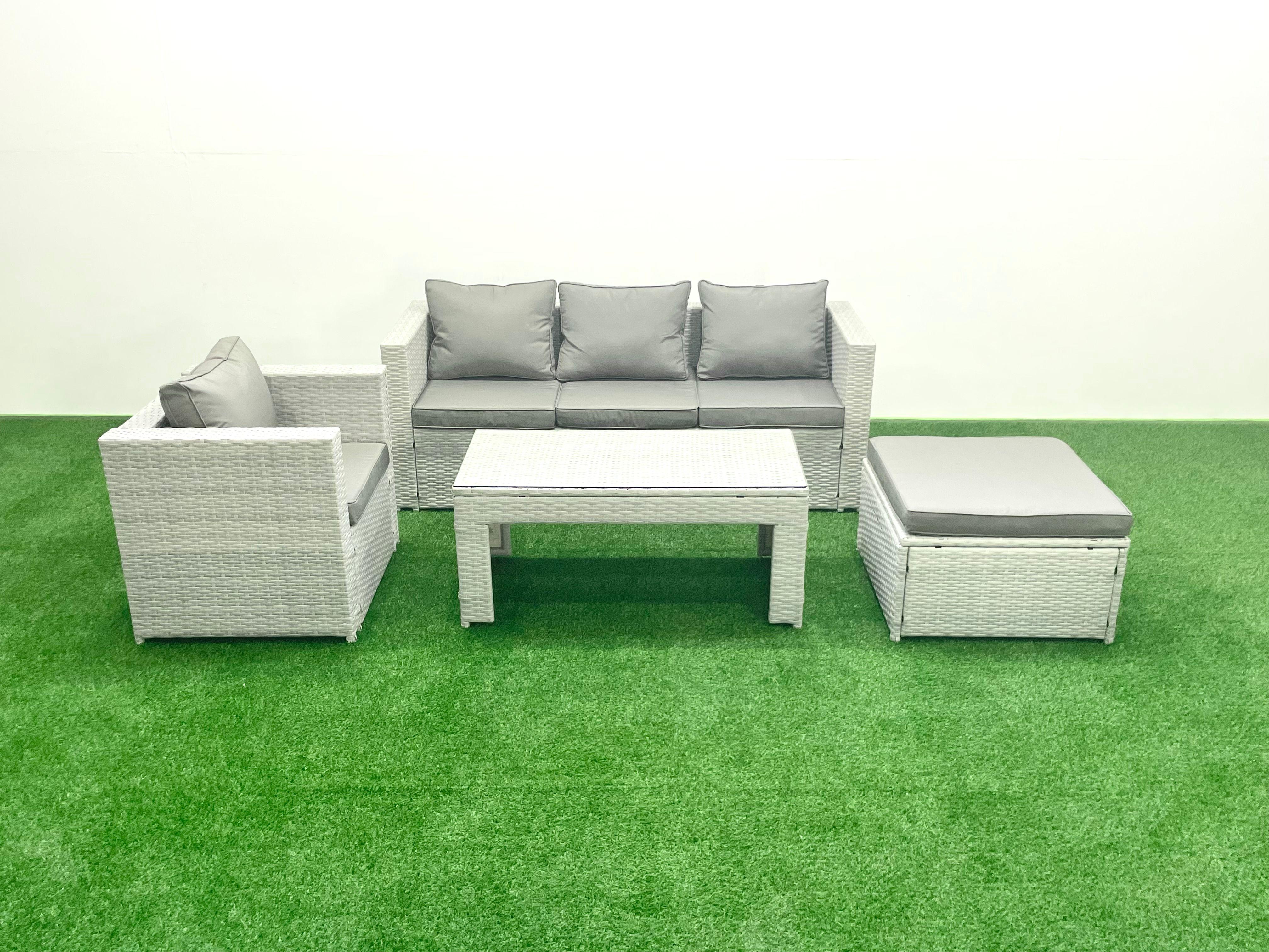 Salon de jardin 4 Pièces Canapé de jardin Table basse oblongue avec Fauteuil Grand tabouret Gris clair mixte