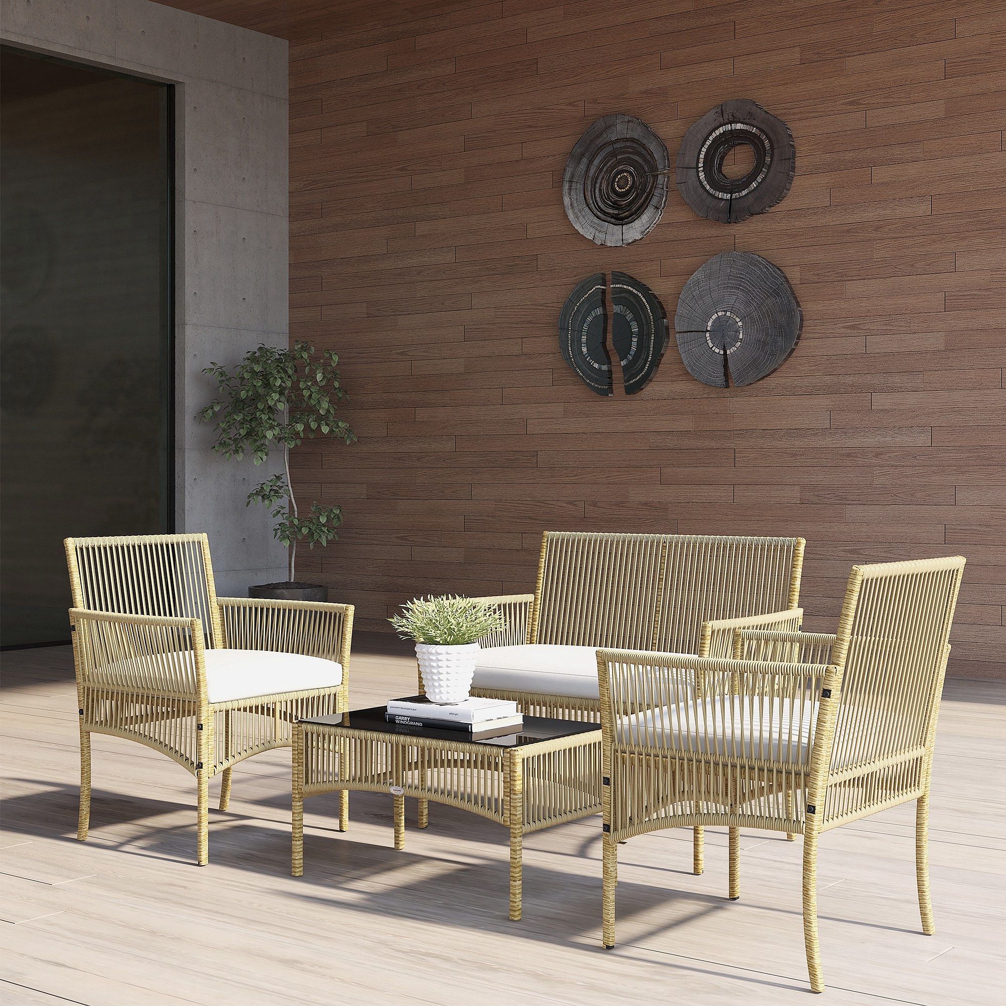 Salon de jardin 4 places 4 pièces style colonial table basse coussins inclus résine tressée filée aspect rotin beige