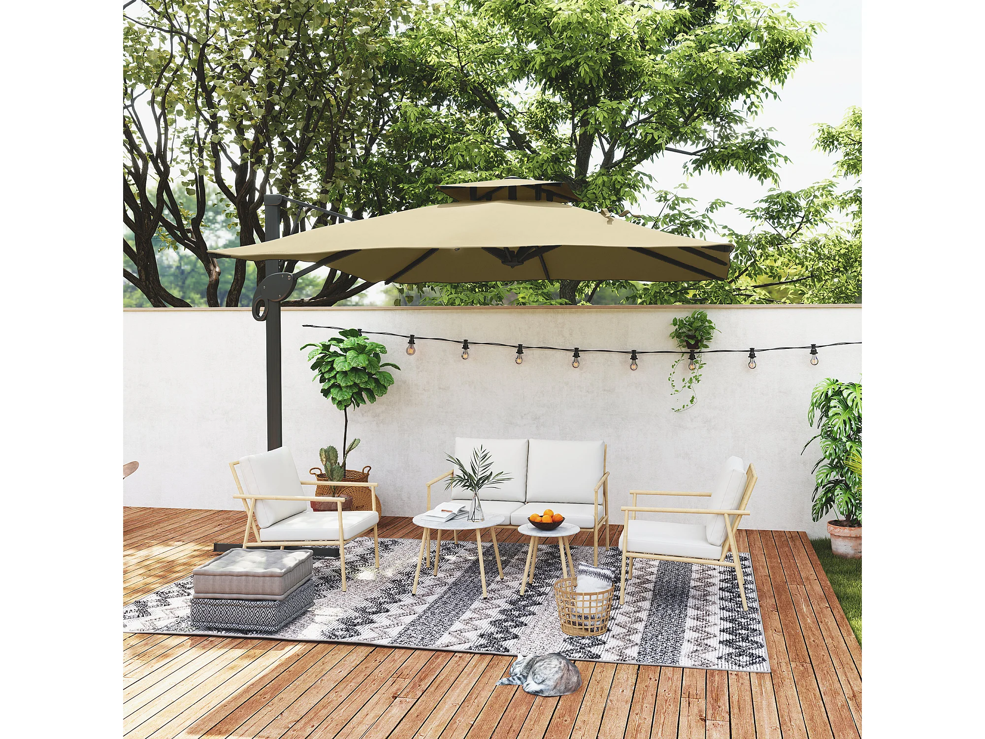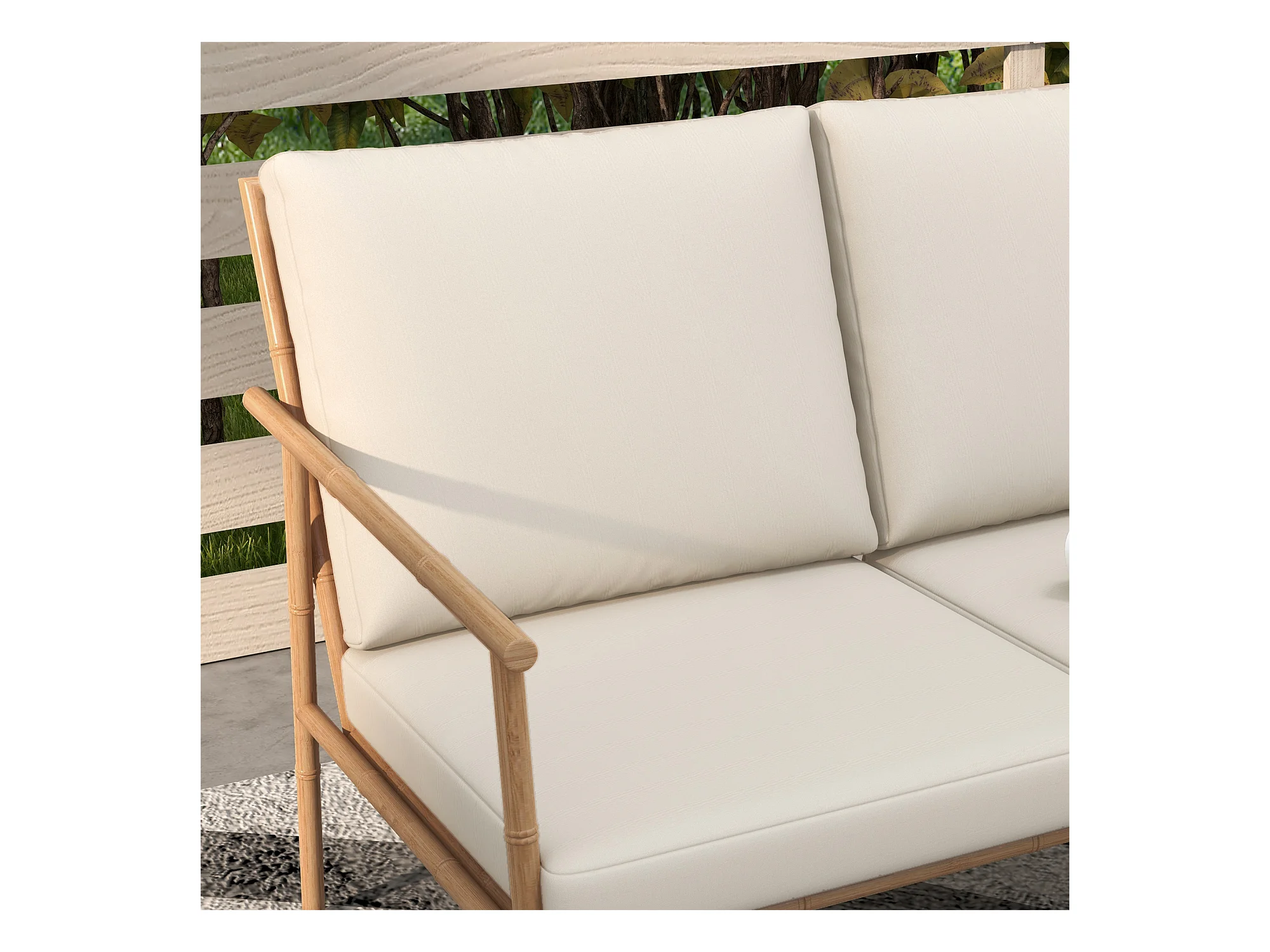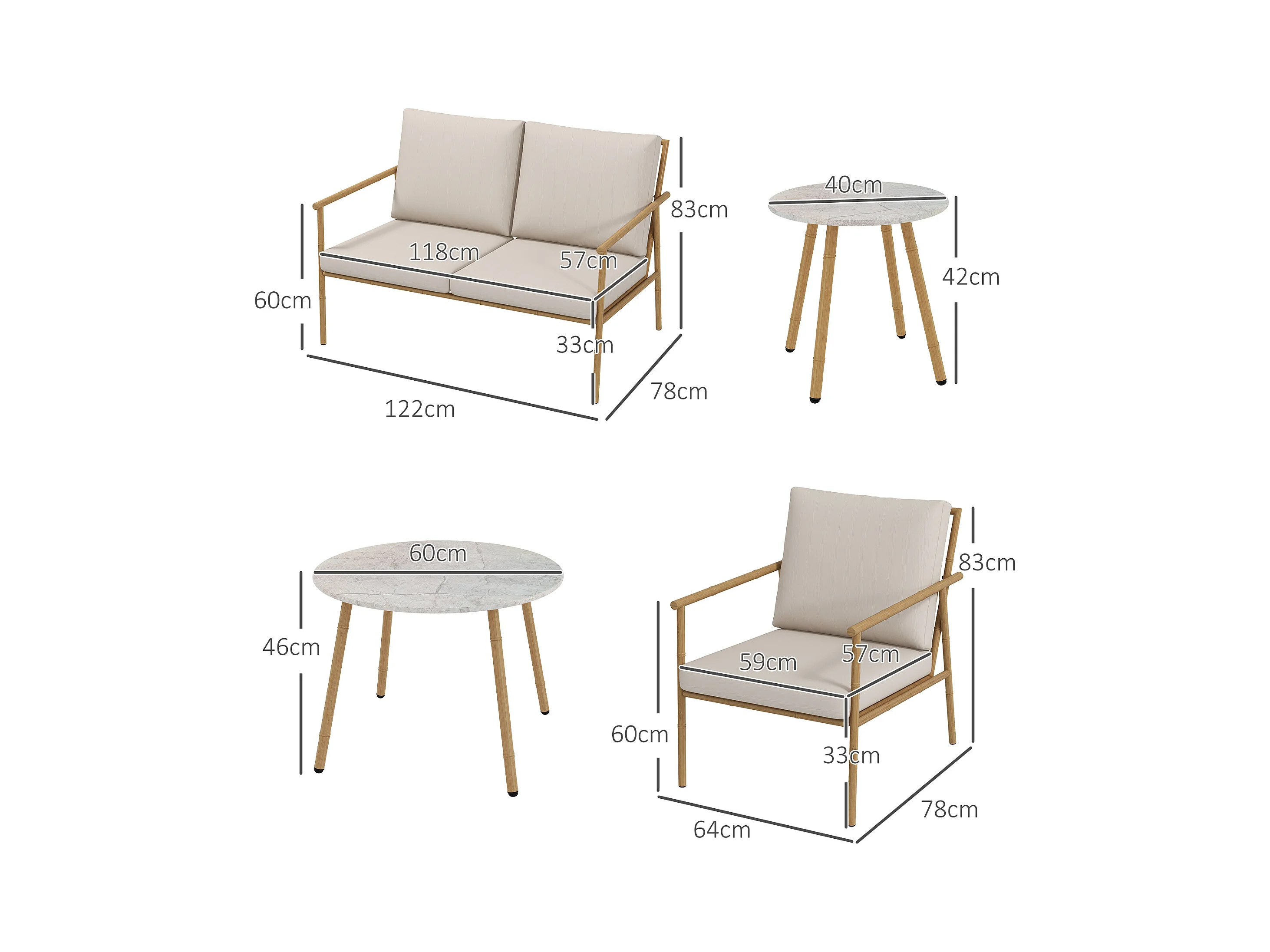 Salon de jardin 4 places 5 pcs style exotique coussins inclus grège aspect bambou