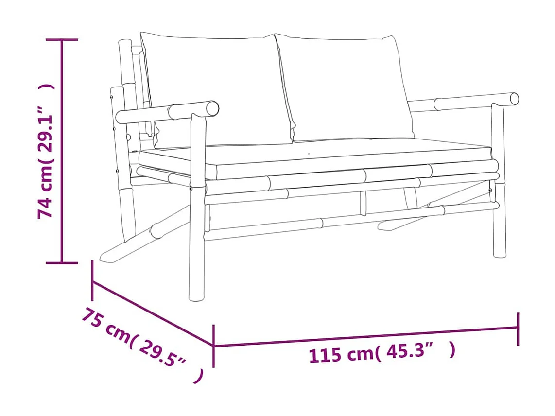 Salon de jardin 5 pcs avec coussins blanc crème bambou