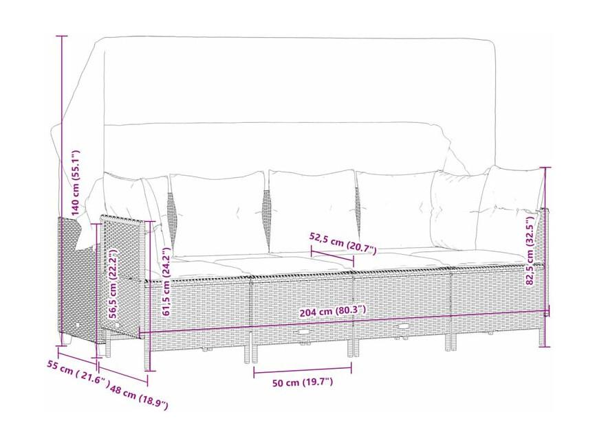 Salon de jardin 5 pcs avec coussins gris clair résine tressée