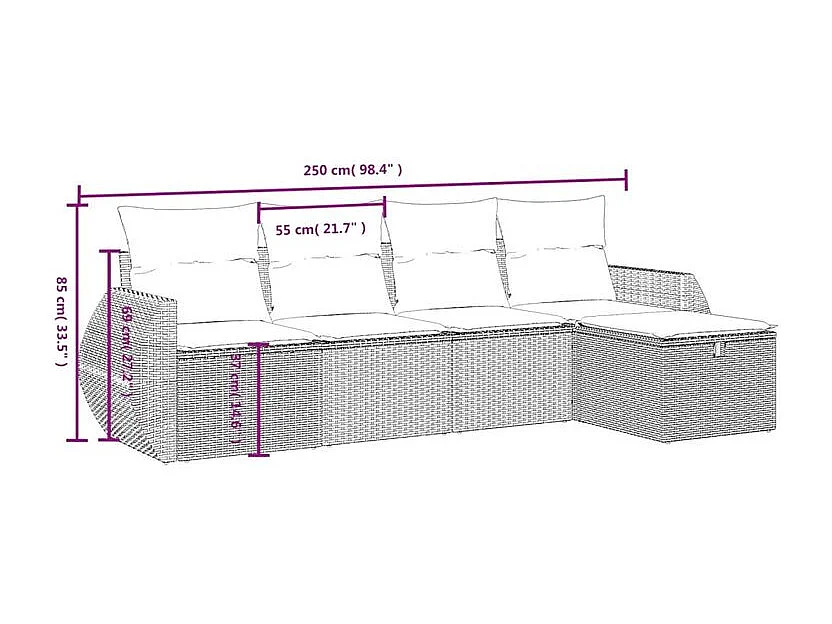 Salon de jardin 5 pcs avec coussins gris clair résine tressée