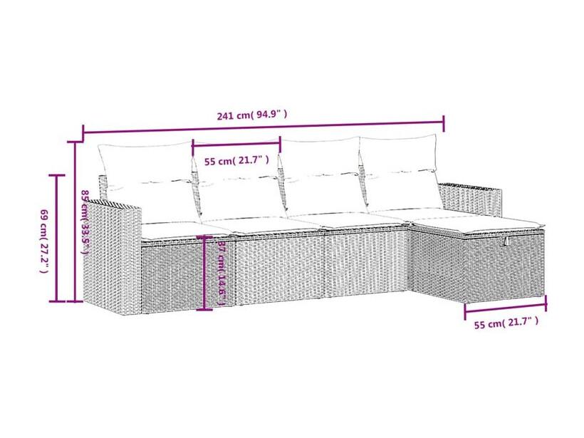 Salon de jardin 5 pcs avec coussins gris clair résine tressée